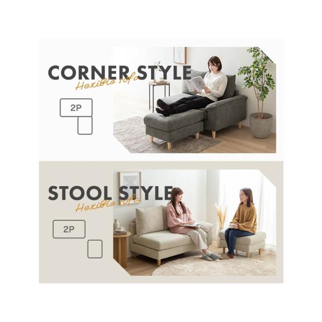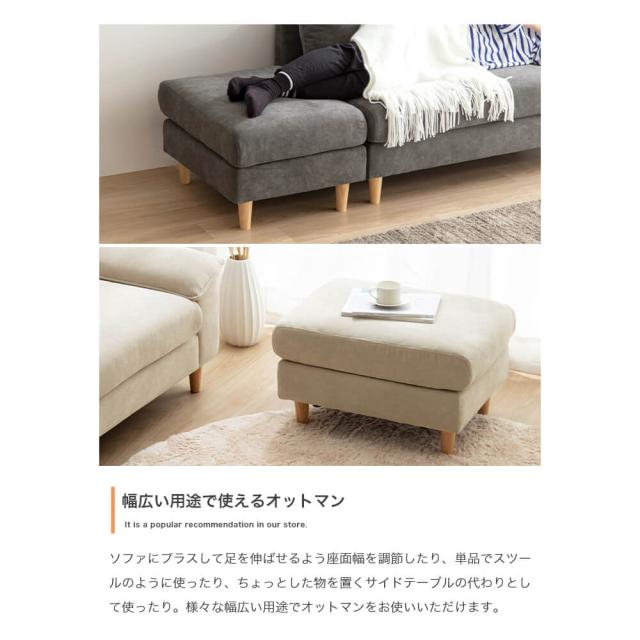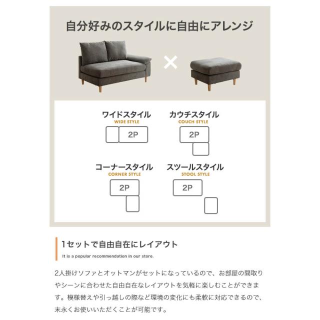 オットマンがセットになっているため、間取りやシーンに合わせて自由自在にレイアウトができ、インテリアのアクセントにもなります。