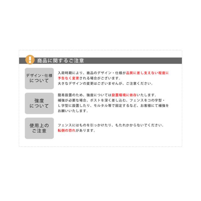 ただし、柔らかすぎる地面などでは倒れる恐れがあるため、埋め込み部分をしっかり埋め込んで頂くか、お客様自身で固定してご使用ください。アイアンミニフェンス(リーフ)は、お庭のアクセントとして、また、間仕切りとして使いやすい商品です。是非、お庭のデザインに取り入れてみてください。
