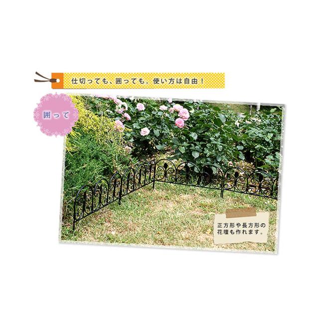この商品は、小さくても実力派で、お庭にリズム感を生み出すことができます。高さが低く、開放感をキープしつつ間仕切りすることができるため、花壇作りやお庭の間仕切り、隣家との境界線などにぴったりです。また、連続の曲線がやわらかい印象で、長くつなげても圧迫感がありません。狭いお庭でも、カンタンに見栄えのいい空間を作ることができます。プランターフェンスとして、植木鉢の背に立てて、おしゃれなアクセントを加えることもできます。