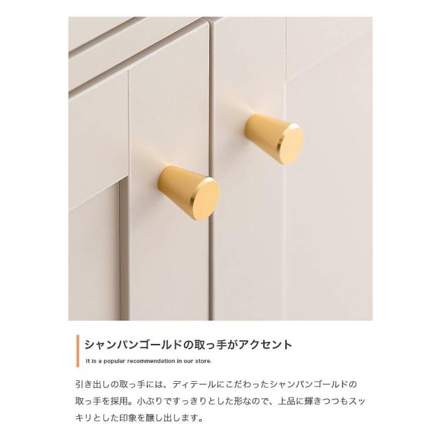 シャンパンゴールドの取っ手と美しい框デザインはお部屋のアクセントとなり、感度の高い海外インテリアのような空間へと導きます。