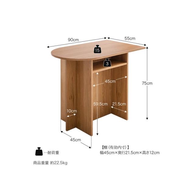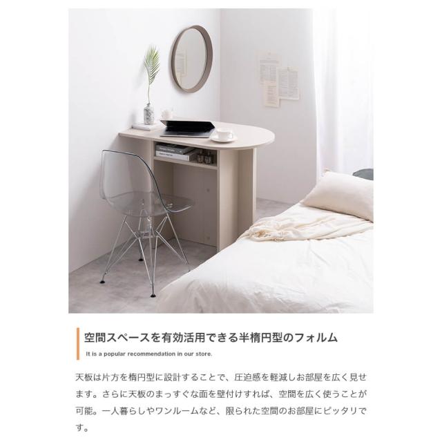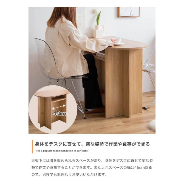 棚付きマルチデスク 半楕円 収納付き 幅90cm