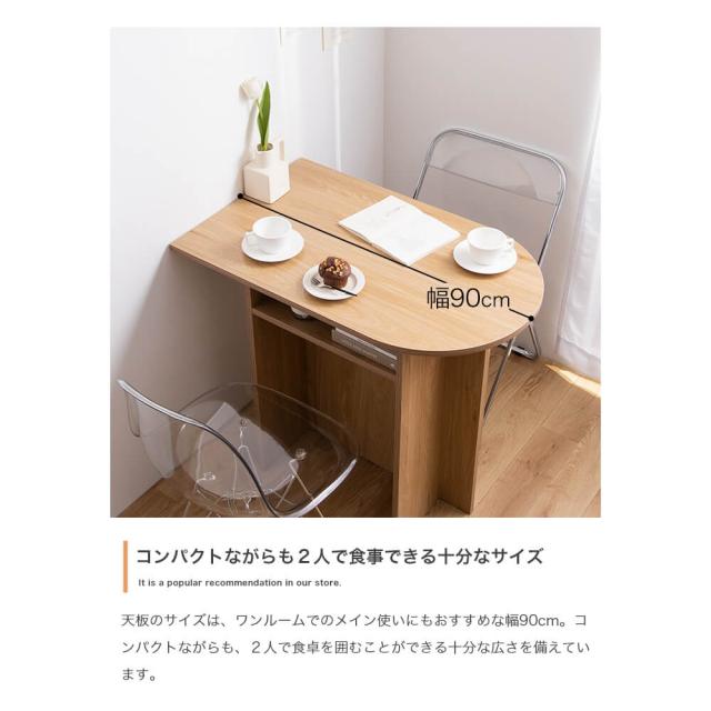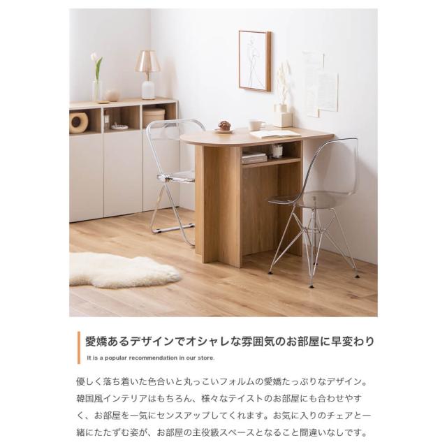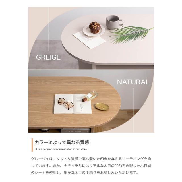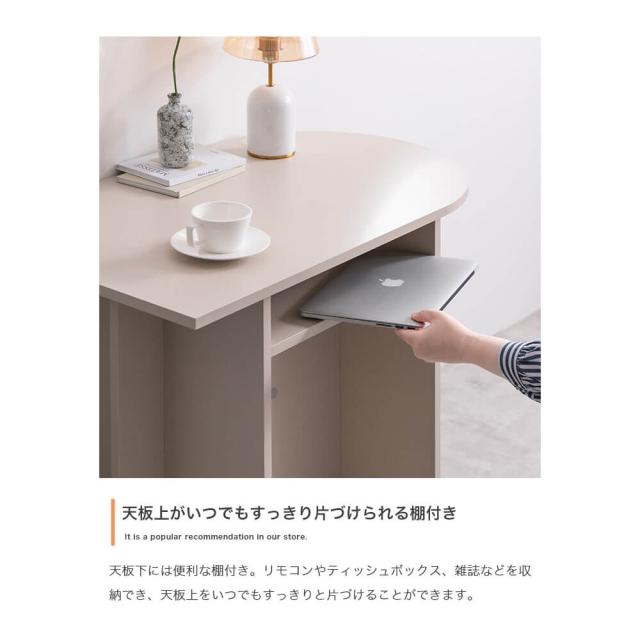 天板下には収納スペースがあり、片方を楕円型に設計していることで、圧迫感を軽減し、お部屋を広く見せる効果があります。