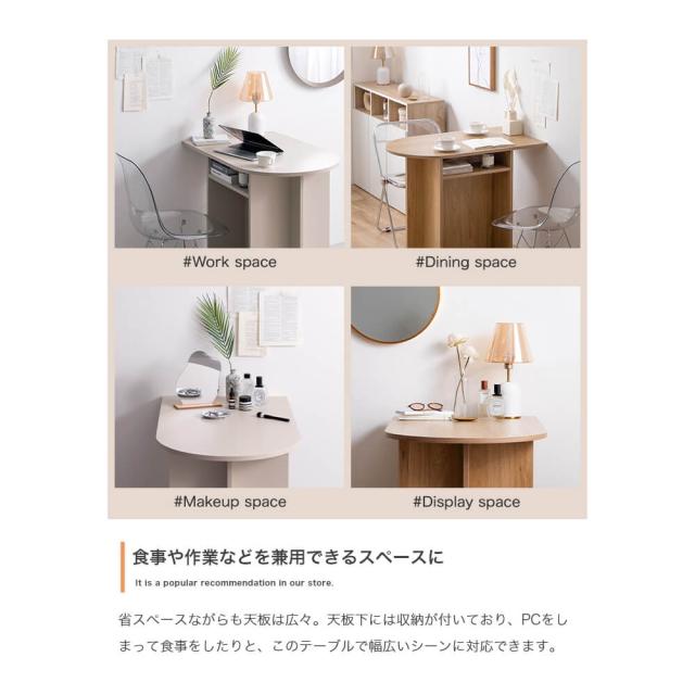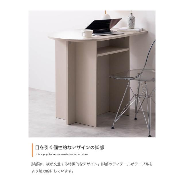 デスク テーブル ダイニングテーブル カフェ ムーンテーブル 半楕円 コンパクト 韓国 海外インテリア グレージュ ナチュラル