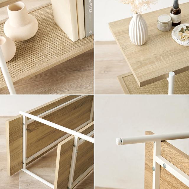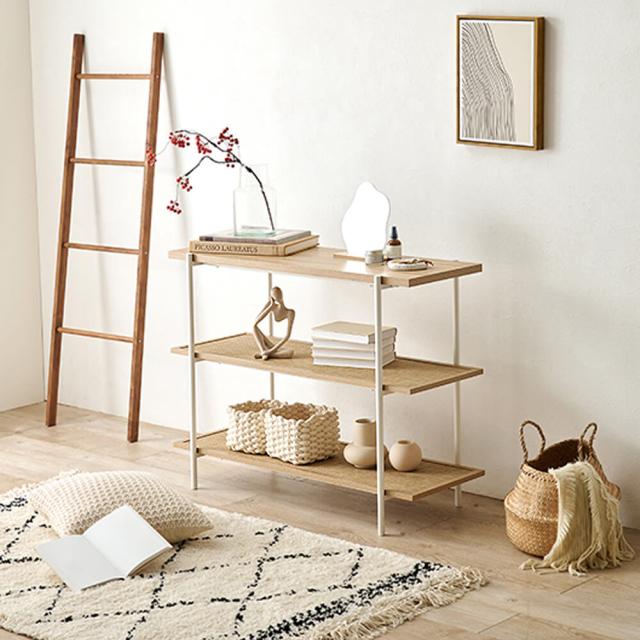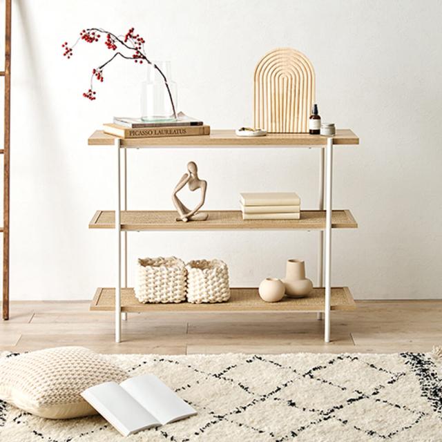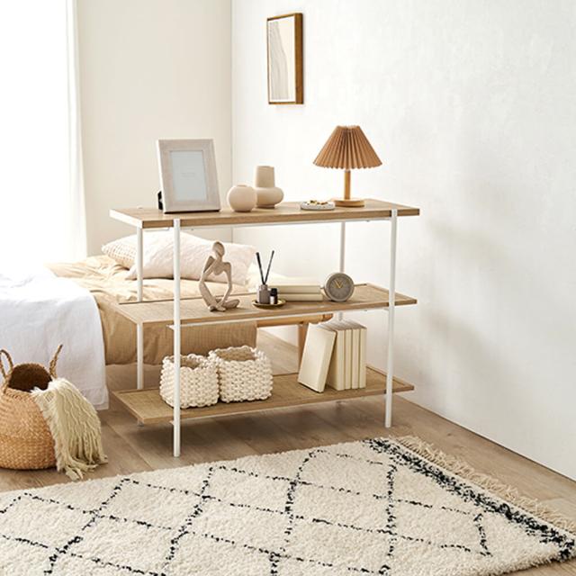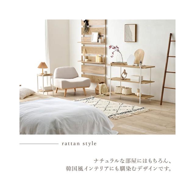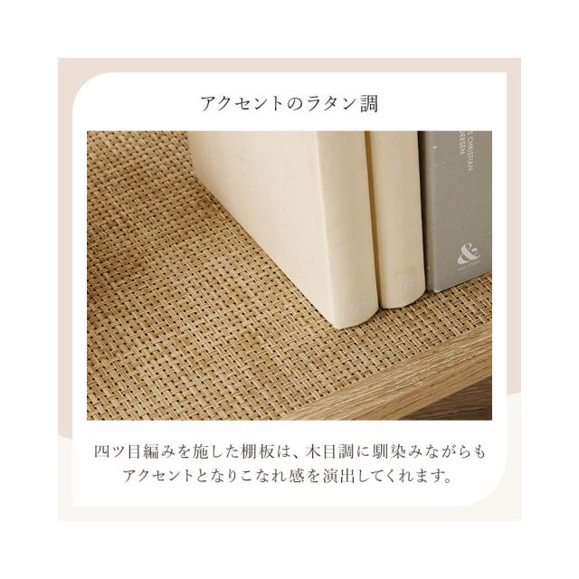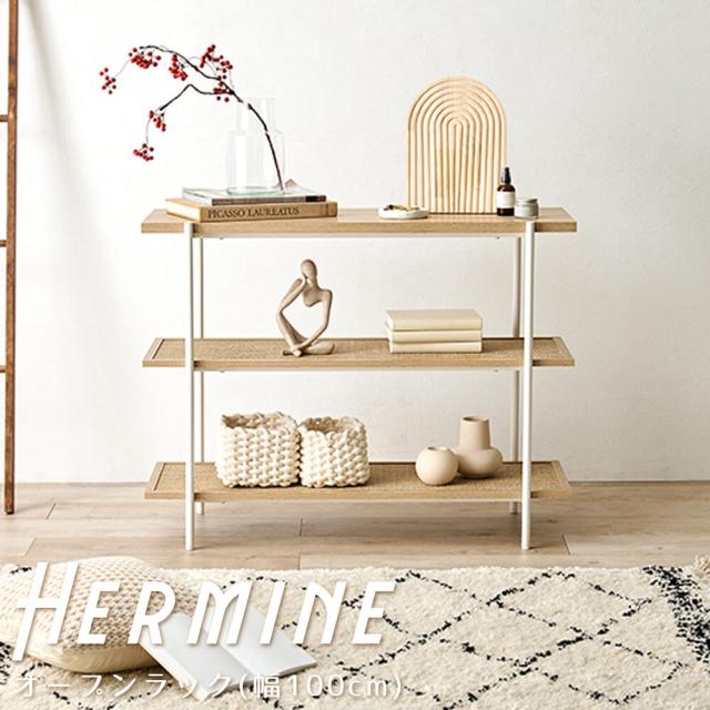 ラタン調の編み目で仕上げた棚板がアクセントとなり、おしゃれなオープンラック『Hermune (エルミン)』シリーズ。