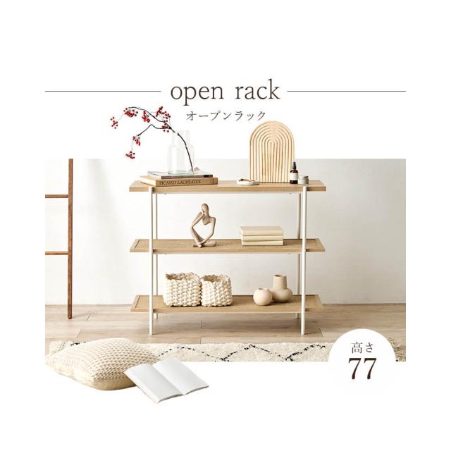 Hirmine (エルミン) ラタン調3段オープンラック オープンラック 木目調 ラタン調 3段ラック ナチュラル 棚 シェルフ