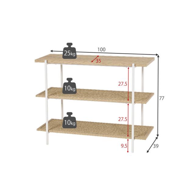 (約) 幅 100cm × 奥行 39cm × 高さ 77cm耐荷重: 上段 25kg 、中段 10kg 、下段 10kg