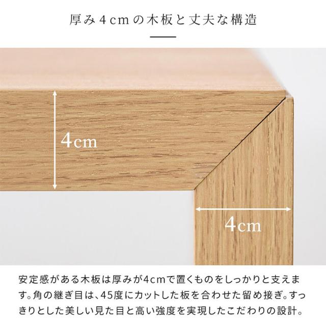 厚み4cmの頑丈な設計でパソコンやプリンターも置けるので、ハイタイプのデスクとしてテレワークや在宅勤務の方にも安心してお使いいただけます。