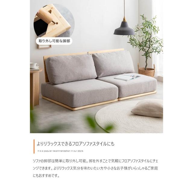 ソファの脚部は簡単に取り外し可能で、フロアソファスタイルにも変更できるので、気軽にリラックスした雰囲気を楽しむことができます。