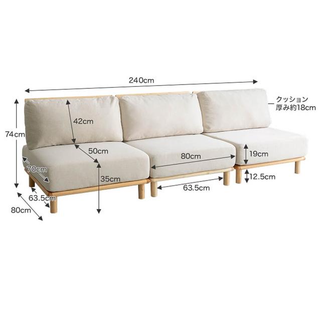 ■サイズ幅 240cm( 80cm + 80cm + 80cm )x奥行 80cmx高さ 74cmx座面高 35cm