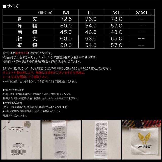 AVIREX アヴィレックス アビレックス 長袖 シャツ 783-4920002 チェックシャツ ワークシャツ メンズ デイリー コットンフランネル ネルシャツ