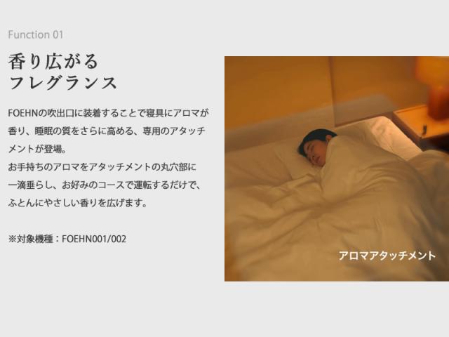 FOEHNの吹出口に装着することで寝具にアロマが香り、睡眠の質をさらに高める、専用のアタッチメント。