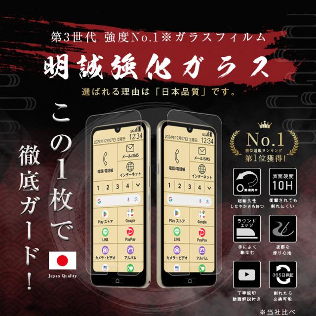 【2枚セット】らくらくスマートフォン Lite/a 強化ガラス保護フィルム 超薄型 表面硬度10H 耐衝撃 キズ防止 指紋防止 飛散防止 貼り付け簡単