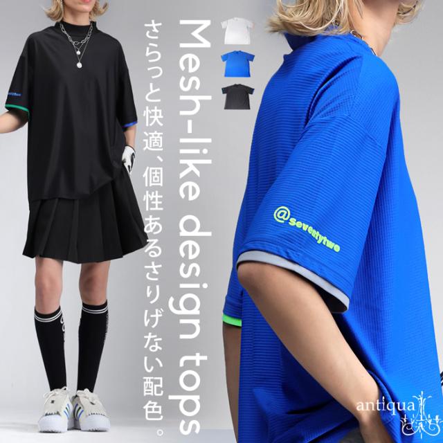 【検索ワード】ANTIQUA GOLF×seventytwo clubhouse【STCH】 メッシュライクトップス Tシャツ レディース トップス 半袖 五分袖 配色 モックネック ロゴ ロゴプリント ロゴT シンプル ゆったり カットソー きれいめ 高級感 インナー レイヤード 重ね着 ワッフル調 軽量 快適 伸縮 ストレッチ オーバーサイズ プレミアムスパンデックス クレオラ トレーニング ジム ウォーキング ランニング ヨガ フィットネス ジョギング ナイロン ホワイト 白 ブラック 黒 ブルー 青 サイズ展開 ML LXL ユニセックス ANTIQUA GOLF seventytwo clubhouse【STCH】コラボ antiquagolf アンティカ ゴルフ 女性 女 おしゃれ 10代 20代 30代 40代 50代 60代 seventytwo clubhouse STCH セブンティツークラブハウス 春 夏 お洒落 カジュアル ストリート かわいい かっこいい カッコイイ レディースファッション ゴルフウェア ゴルフ用品 スポーツウェア 普段使い スポーツ 運動 ゴルフブランド トレンド コーディネート あんてぃか