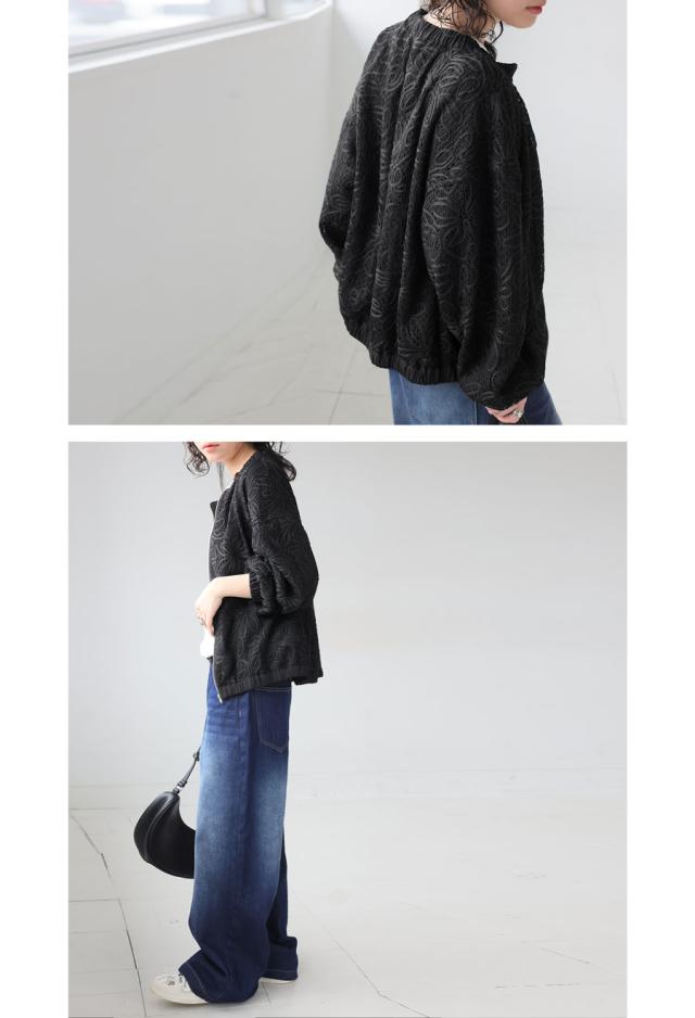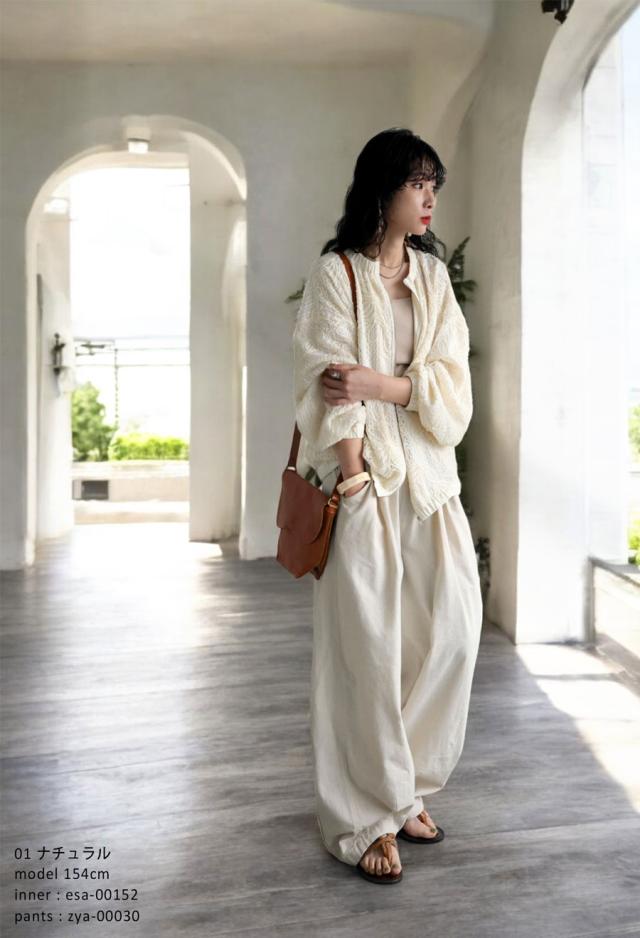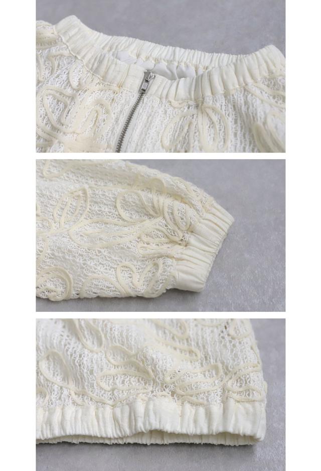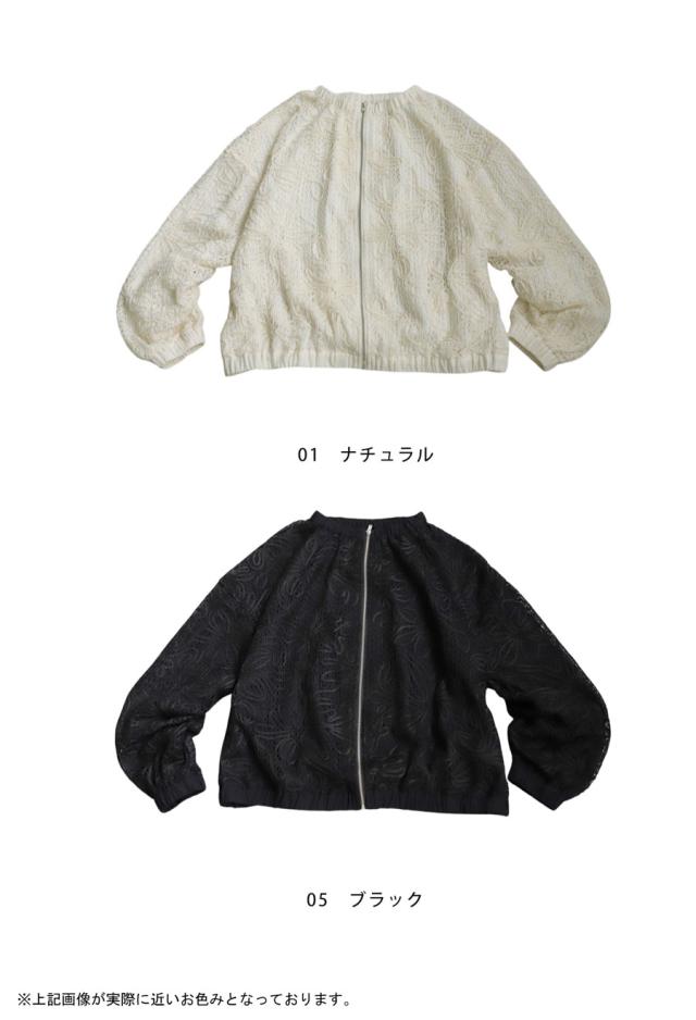 pk-01304 長袖 レーステープ 柄 花柄 クルーネック 丸首 ニュアンス感 ギャザー ナチュラル 羽織り ジャケット 前開き ゆったり シンプル きれいめ 上品 高級感 レース 上着