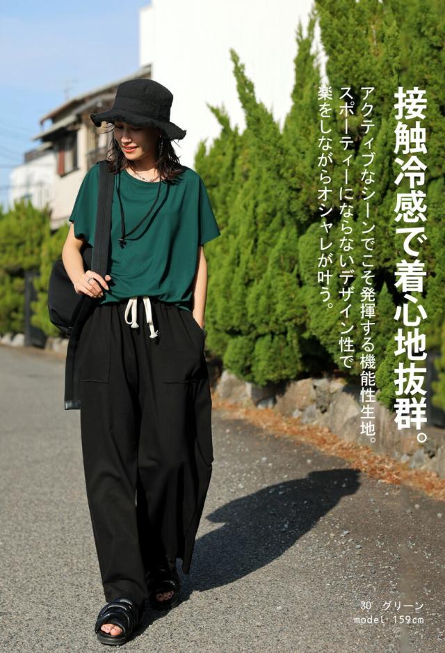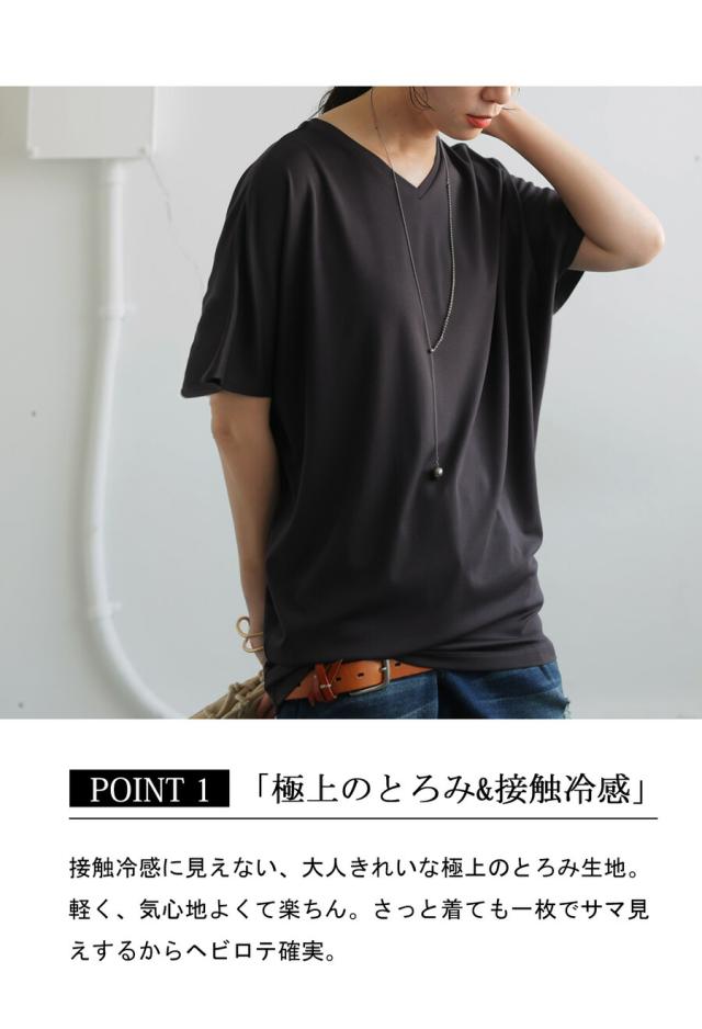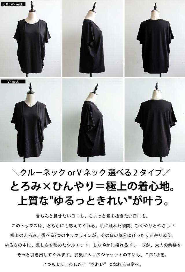 ay-00073 フレンチスリーブ きれいめ シンプル カットソー プルオーバー クルーネック Vネック ひんやり 快適素材 ゆったり オーバーサイズ 大きいサイズ ドルマン風 快適