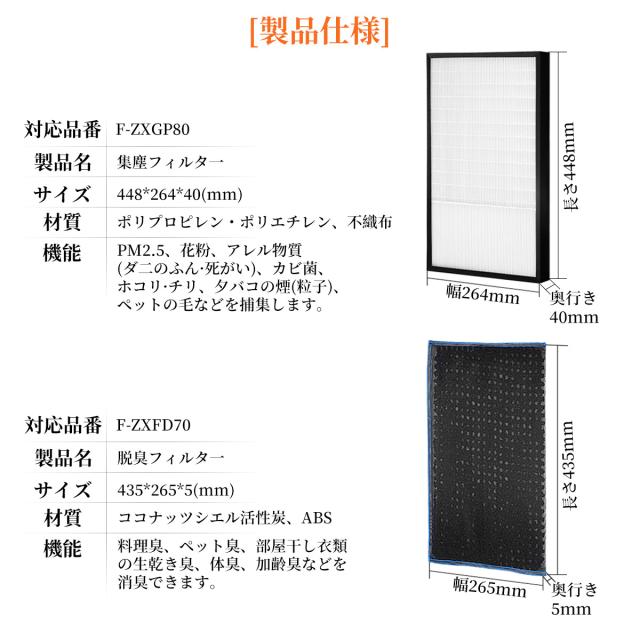 パナソニック F-ZXGP80 F-ZXFD70 フィルター 集じんフィルター f-zxgp80 脱臭フィルター f-zxfd70 加湿空気清浄機 F-VXH70 F-VXG70 FVXGB70 FVX70E8 F-VXH80 F-VXG80用 集塵脱臭フィルターセット (互換品/1セット)