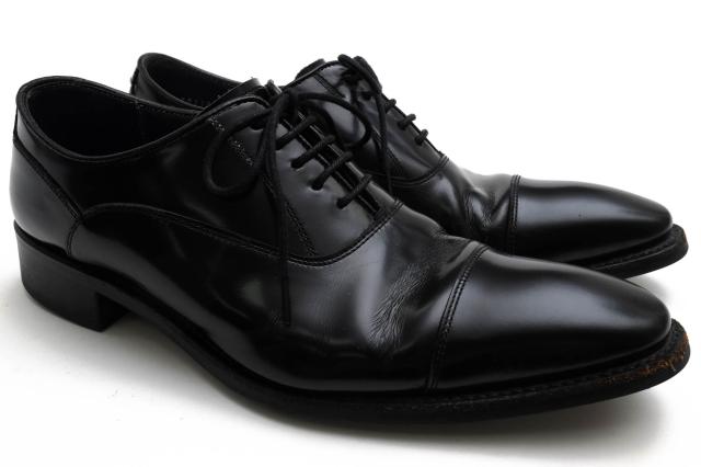 内羽根式のストレートチップデザインで、革の上質さが浮き彫りになる一足。つま先、踵部分の表面に「軟質樹脂」を配合した塗装を施したスクラッチタフレザーを採用。複雑な縫合により優れた耐久性を実現するグッドイヤーウェルト製法で返りが良く、足馴染みが良いのが特徴。ビジネスシーンはもちろん、冠婚葬祭にもご利用いただけます。
