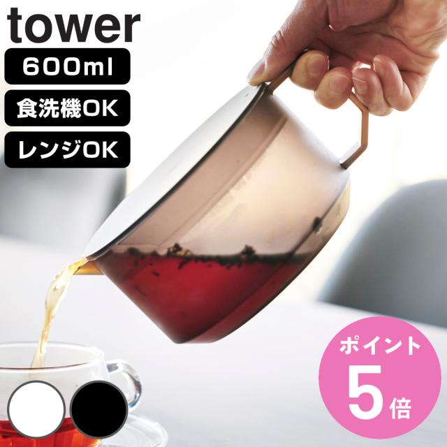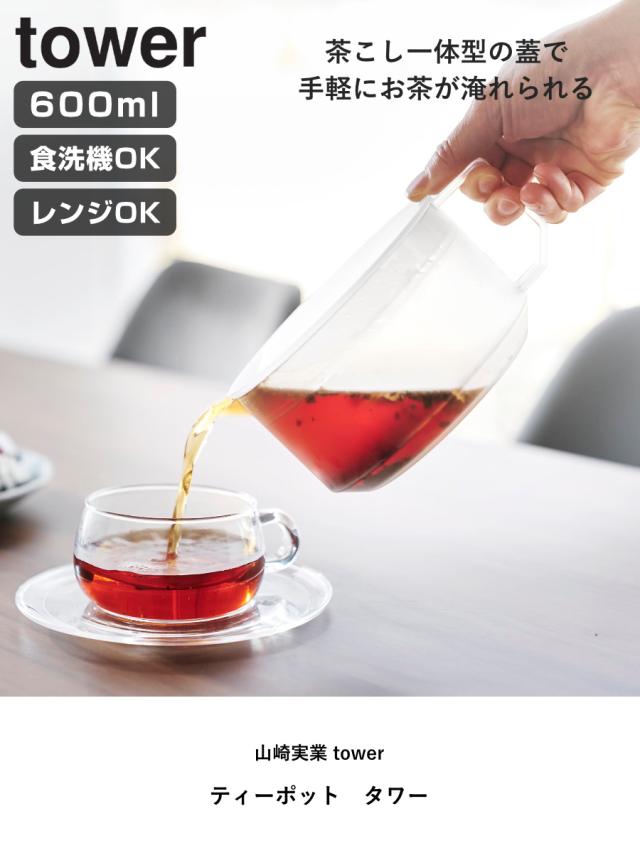 山崎実業 tower ティーポット タワー ( 4903208016728 タワーシリーズ 紅茶ポット 電子レンジ対応 食洗機対応 半透明 一体型 茶葉がこせる フタ 蓋 一体型 茶こし一体型 急須 )