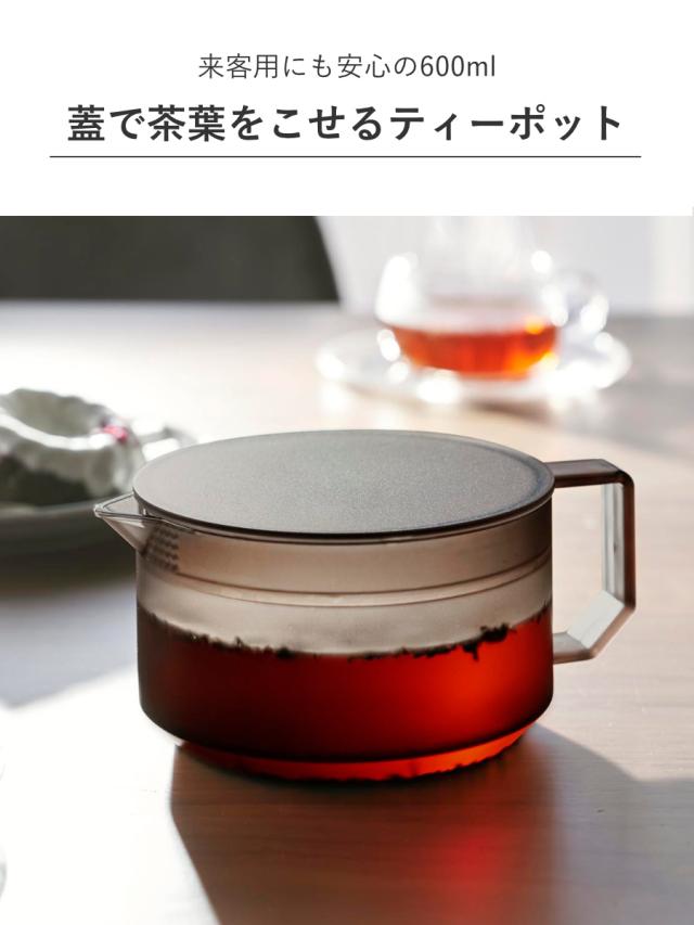 ティーカップ3〜4杯程度を楽しめる、容量600mLのシンプルなデザインのティーポットです。蓋と茶こしが一体になっているので、蓋で茶葉がこせて手軽にお茶を淹れられます。