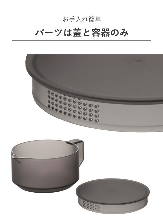 パーツも少なく蓋と容器のみなので、お手入れも簡単です。開口部も広く、手洗いでも洗いやすい形です。