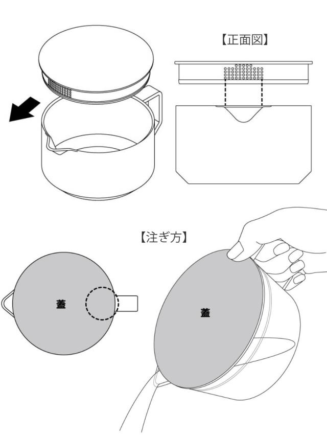 ※注ぎ口を下に傾けすぎたり、勢いよく傾けたりすると、液漏れや蓋が外れる場合があります。