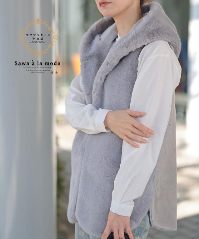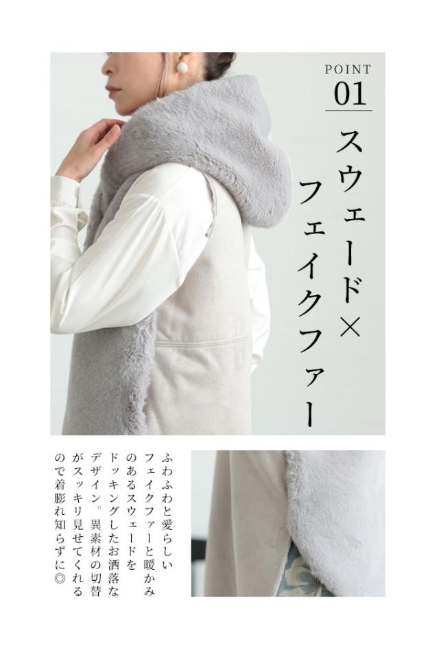 春新作 ずっと触れていたいスウェード切替エコファーベスト レディース ファッション アウター ジャケット ベスト ジレ 羽織り 大人可愛い 40代 レディースファッション 50代女性 ファッション 60代 ミセスファッション サワアラモード sawaalamode otona alr-105362