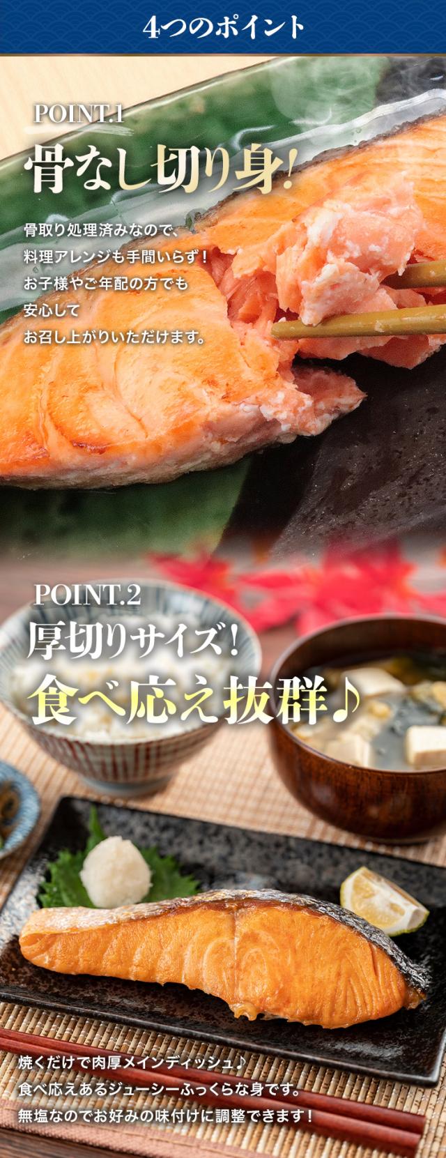 - 硬い鮭の骨を気にしなくて食べられるのは嬉しい。味もいい。他店品より遅れて届いたが同じようにひと切れが厚くて食べごたえあり。骨なしの分アドバンテージ。