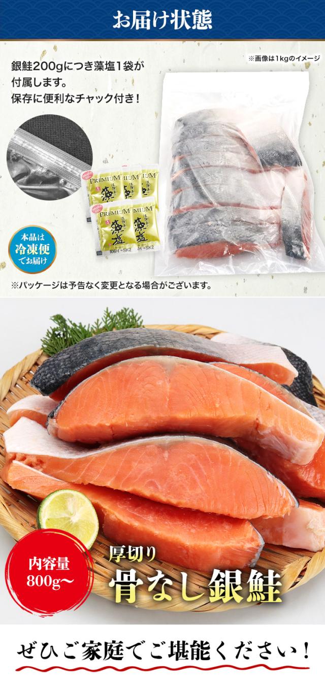 骨なし 銀鮭 切り身 肉厚 1kg 10切れ 藻塩付 加熱用 骨取り さけ 鮭 焼き鮭 チリ産 朝食 おかず ギフト プレゼント