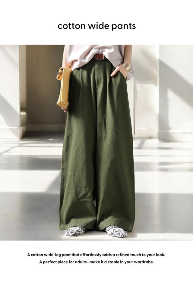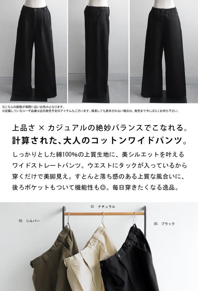 しっかりとした綿100%生地に、美シルエットを叶えるワイドストレートパンツ。