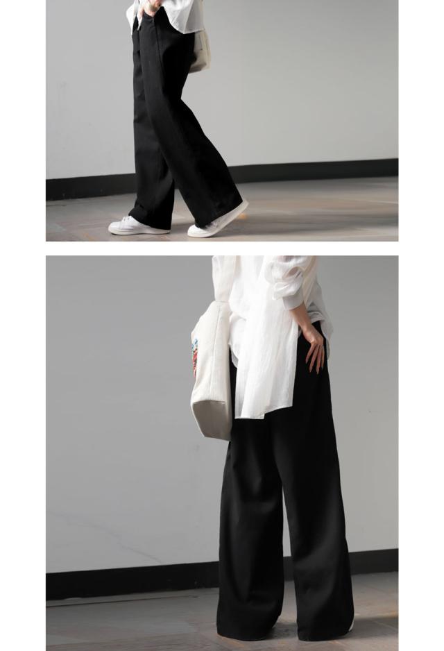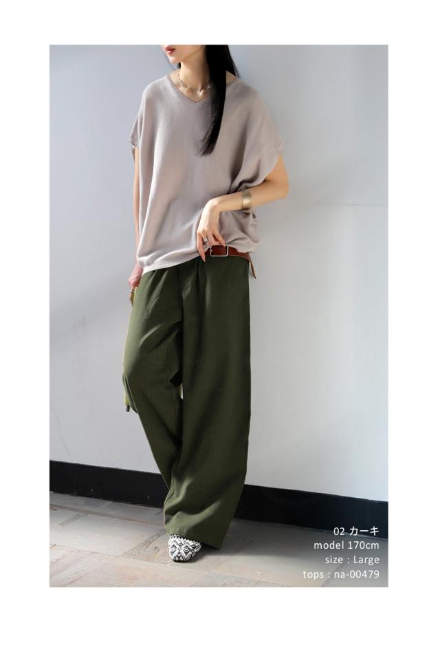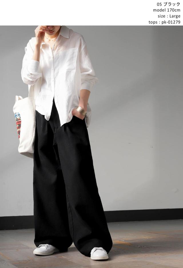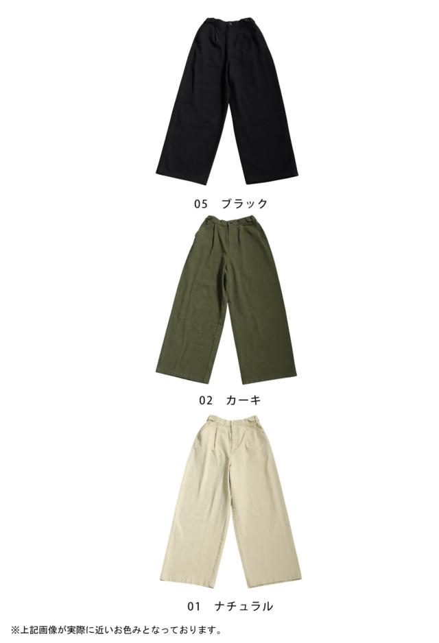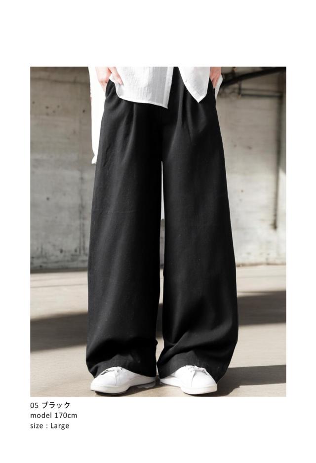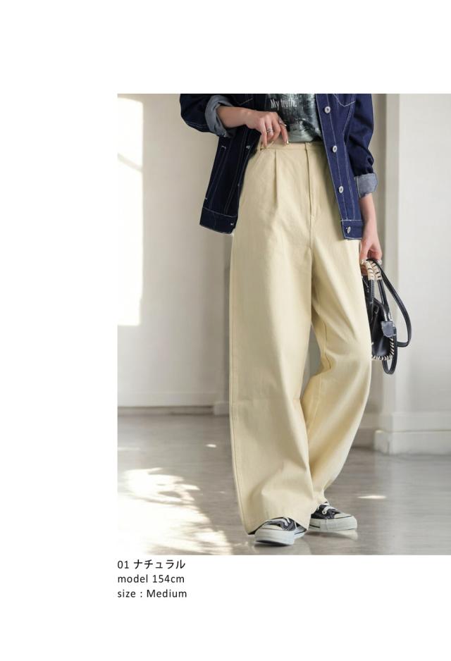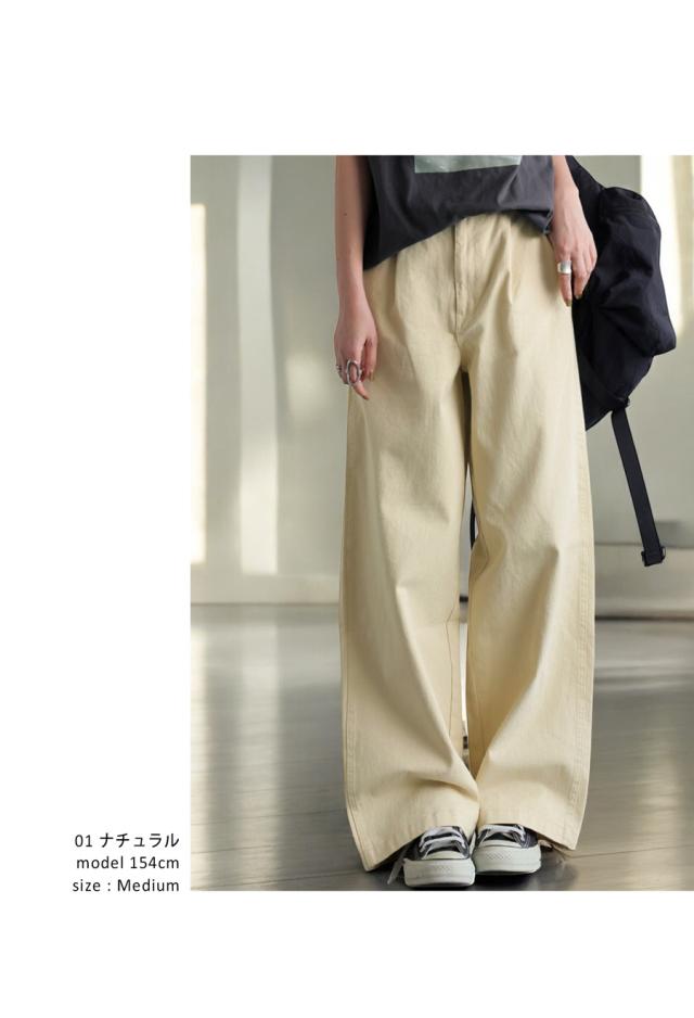 yz-00098 ロング 無地 綿100 綿 コットン ゆったり ワイド ワイドパンツ ワイドストレート タック ウエストタック 美シルエット シンプル 上品 きれいめ ナチュラル ウエストゴム