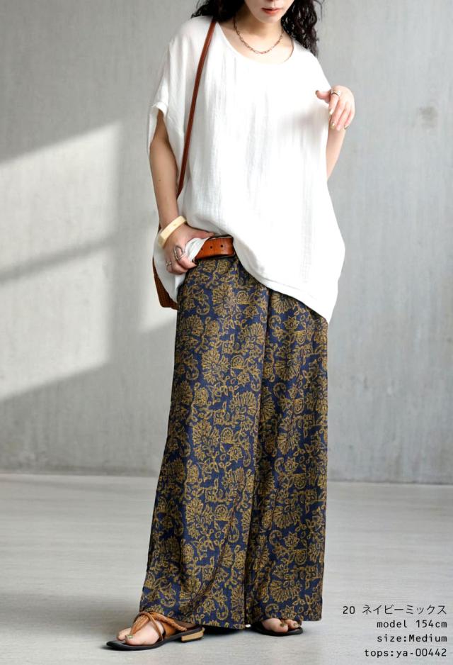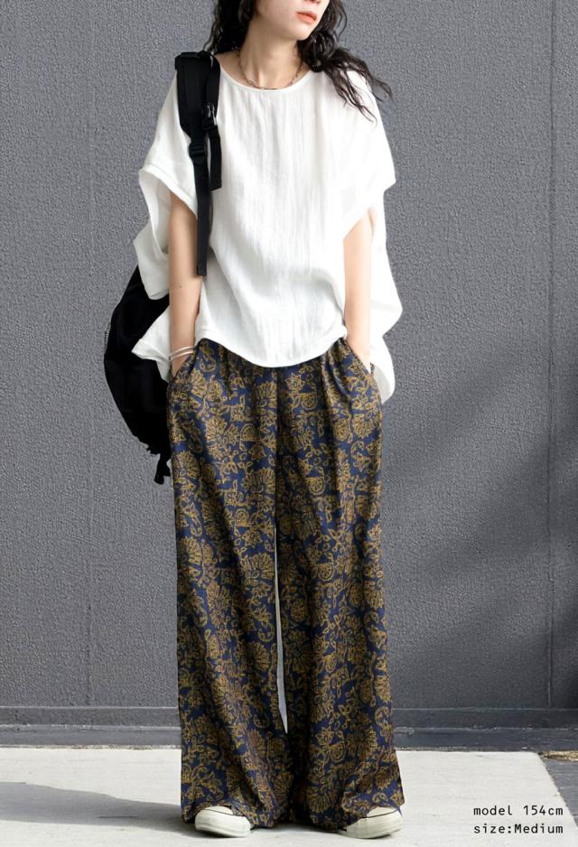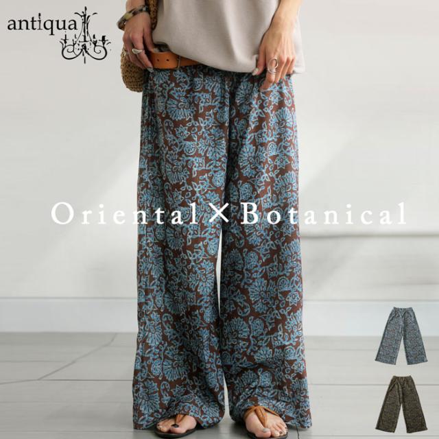【検索ワード】総柄パンツ パンツ レディース ボトムス 柄 ロング ゆったり ワイド ワイドパンツ ストレート ストレートライン ボタニカル柄 ボタニカル オリエンタル 総柄 落ち感 配色 オリジナルプリント 薄手 長ズボン ポケット付き ベルトループ ウエストゴム 前フラット 後ろゴム 体型カバー 細見え 着痩せ 華奢見え ヴィンテージ 古着感 サイズ展開 Medium Large ロングパンツ ブラウンミックス ブラウン ネイビーミックス ネイビー 紺 ユニセックス antiqua treecafe アンティカ ツリーカフェ 大人 おしゃれ 10代 20代 30代 40代 50代 60代 春 夏 秋 冬 オールシーズン お洒落 カジュアル かわいい かっこいい あんてぃか