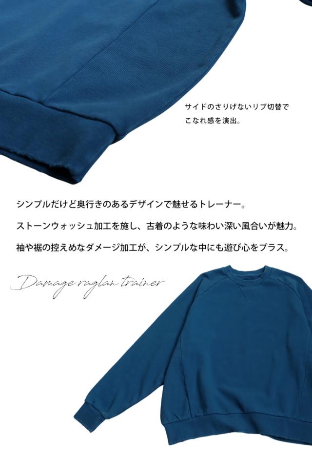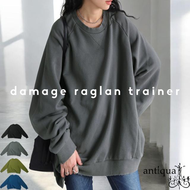 【検索ワード】ダメージラグラントレーナー レディース トップス 長袖 クルーネック 丸首 無地 ラグラン スウェット シンプル 古着風 ヴィンテージ感 ダメージ加工 ストーンウォッシュ加工 ゆったり ラフ 裏毛 裏毛トップス 綿 コットン 着痩せ 細見え 体型カバー オーバーサイズ 大きめ 大きいサイズ ユニセックス antiqua treecafe アンティカ ツリーカフェ 大人 おしゃれ 10代 20代 30代 40代 50代 60代 春 秋 冬 お洒落 カジュアル かわいい かっこいい あんてぃか