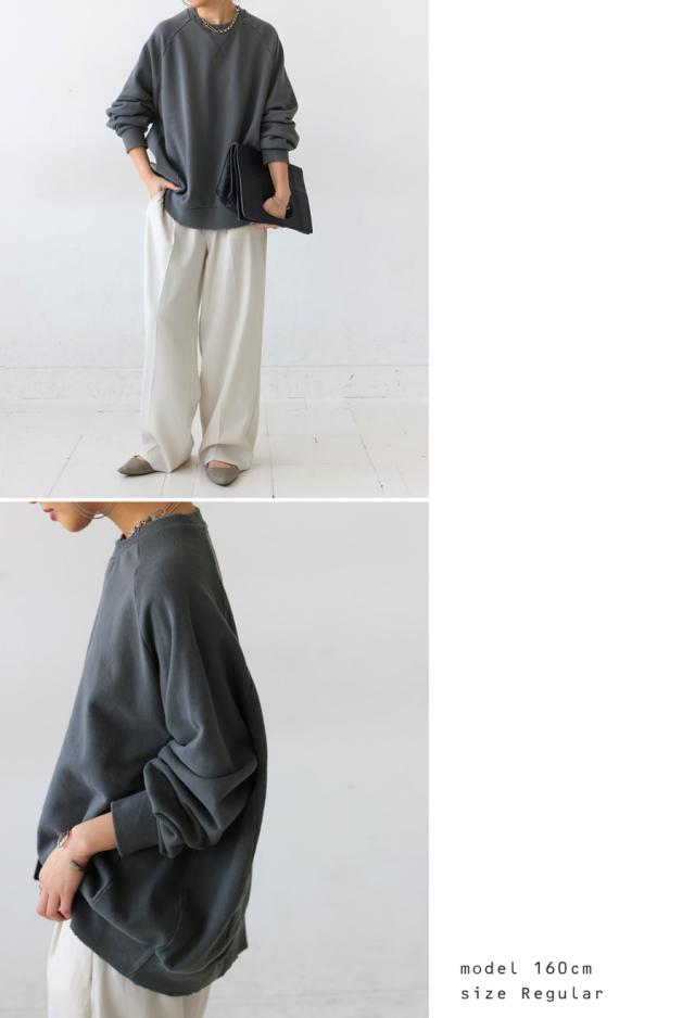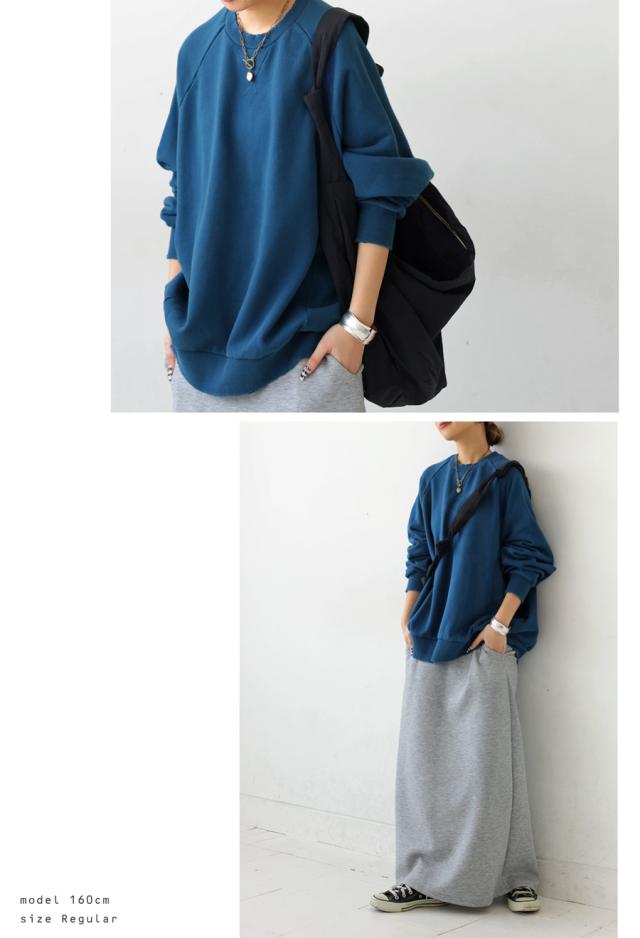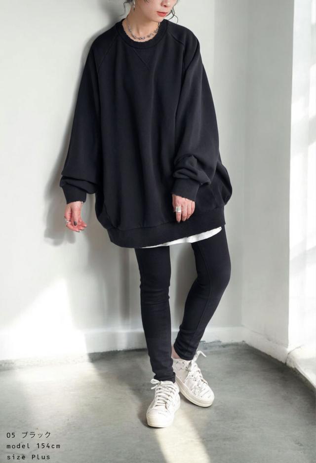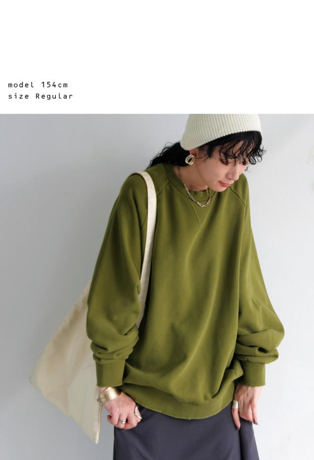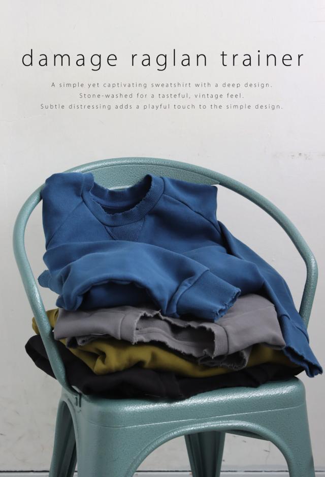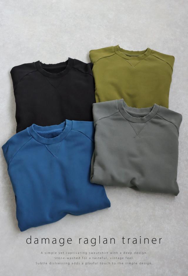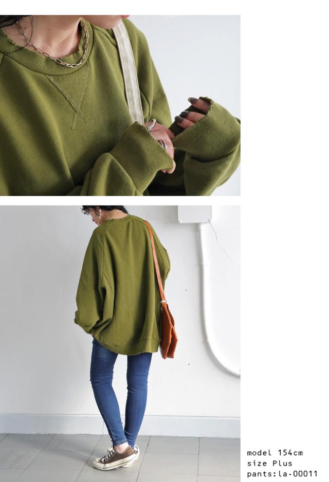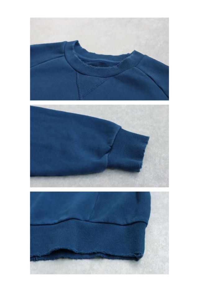 za-00247 長袖 クルーネック 丸首 無地 ラグラン スウェット シンプル 古着風 ヴィンテージ感 ダメージ加工 ストーンウォッシュ加工 ゆったり ラフ 裏毛 裏毛トップス 綿 コットン