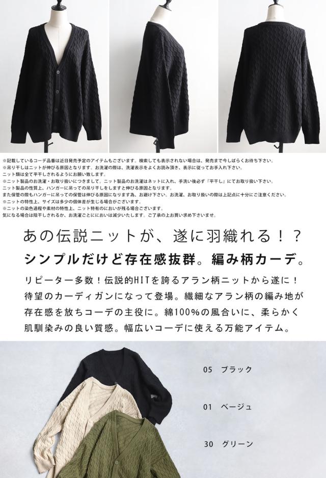 綿100%の極上風合い『アランニットカーディガン』