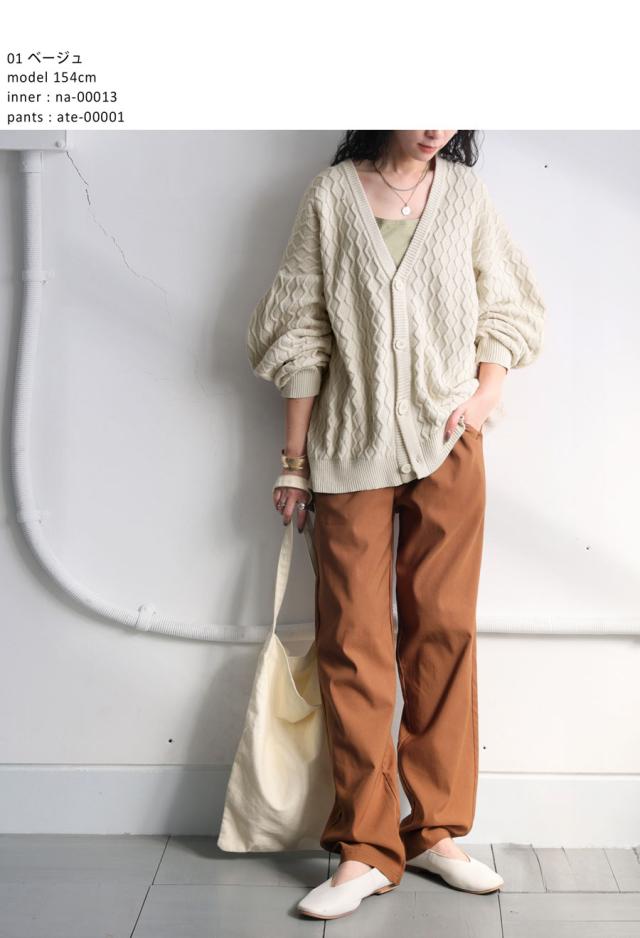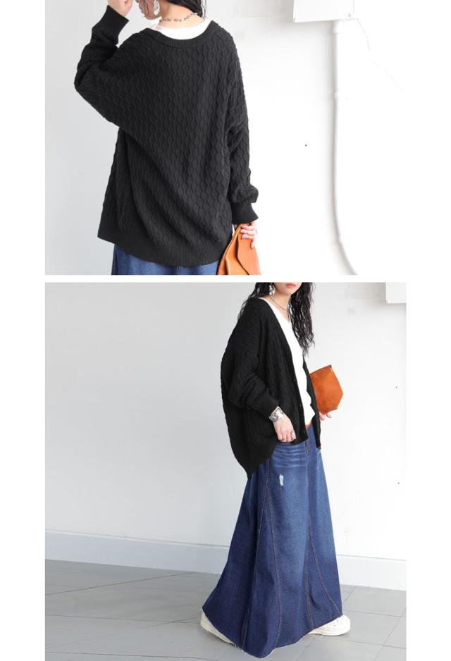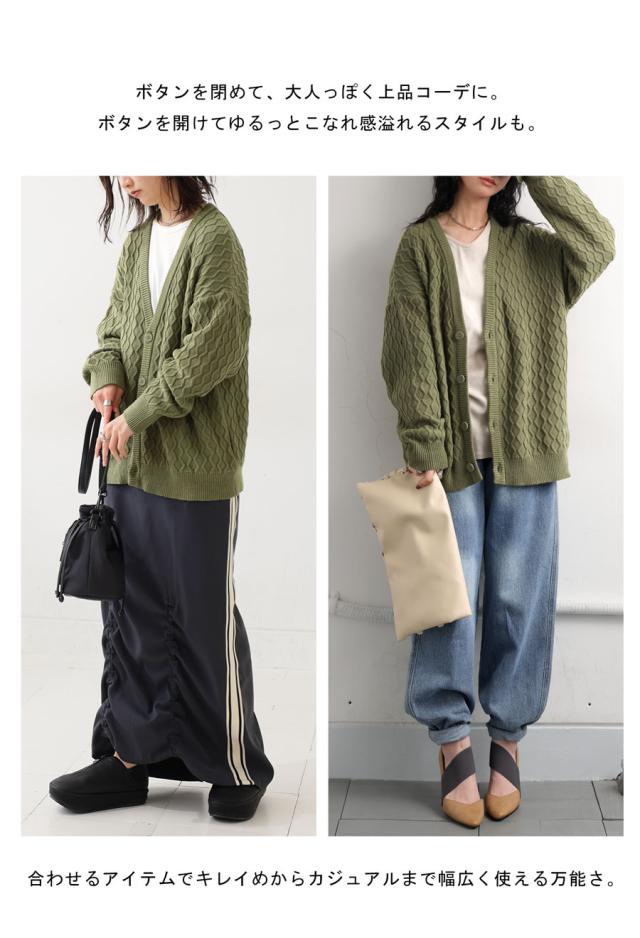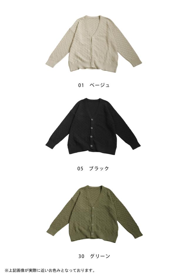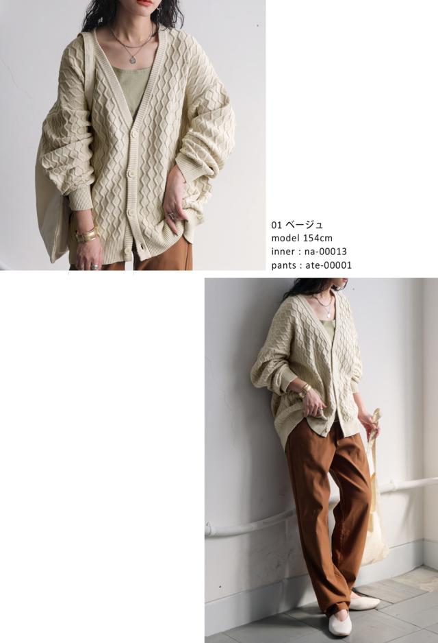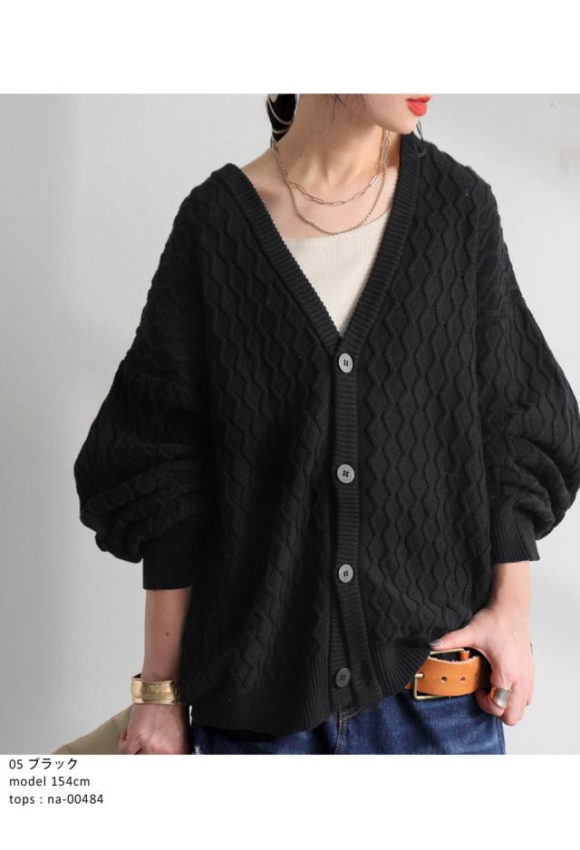 za-00248 アラン柄 柄編み 綿100 Vネック ゆったり ニットカーデ 羽織り ボタン 前開き 同色ボタン シンプル 綿 コットン コットンニット 体型カバー 着痩せ 大きいサイズ