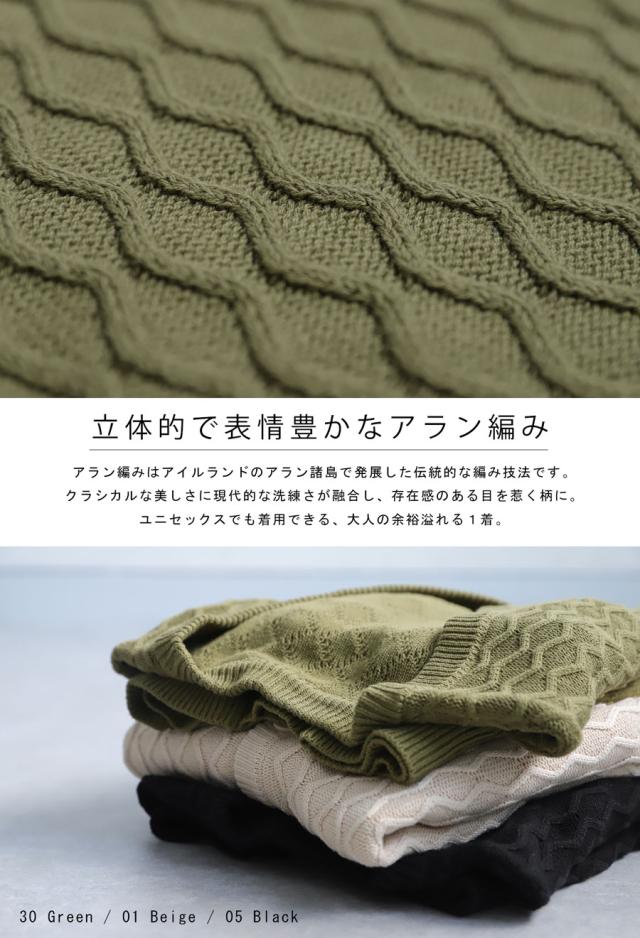 ・存在感のある繊細なアラン柄の編地。