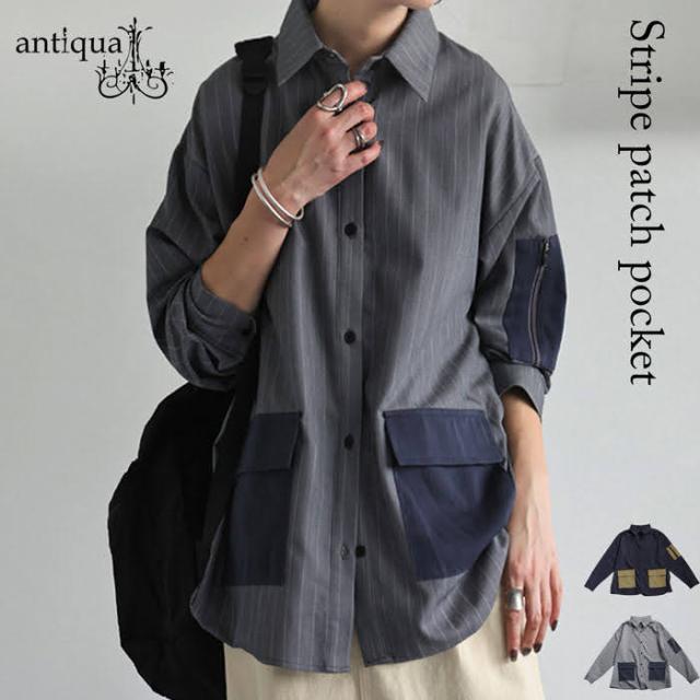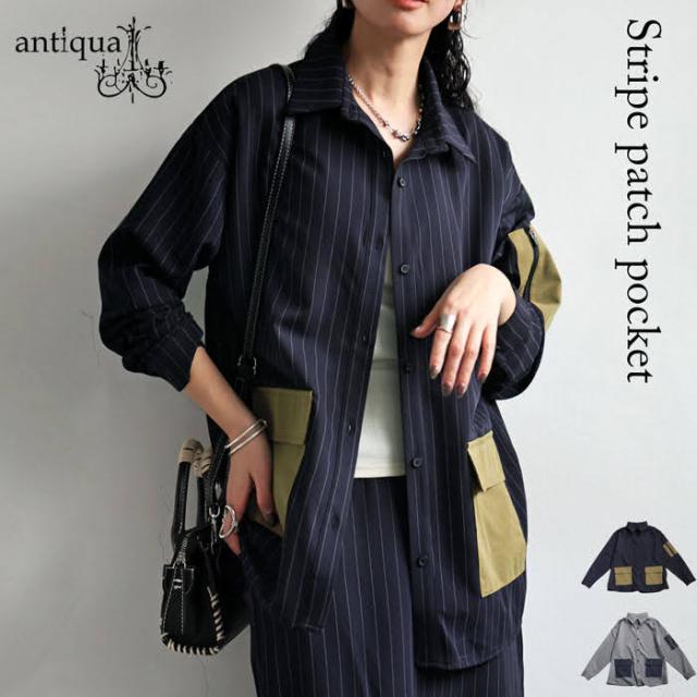 【検索ワード】ストライプ柄 ポケットシャツ シャツ レディース トップス 長袖 ピンストライプ 縦縞 しましま 柄シャツ 柄 総柄 レギュラーカラー シャツカラー 襟付き 前開き ボタン シガレットポケット ビッグポケット ポケット付き セットアップ ゆったり ハイセンス 個性派 モード 高級感 体型カバー 細見え 着痩せ 大きめ 大きいサイズ ブラウス antiqua アンティカ 大人 おしゃれ 10代 20代 30代 40代 50代 60代 春 秋 冬 お洒落 カジュアル かわいい かっこいい あんてぃか