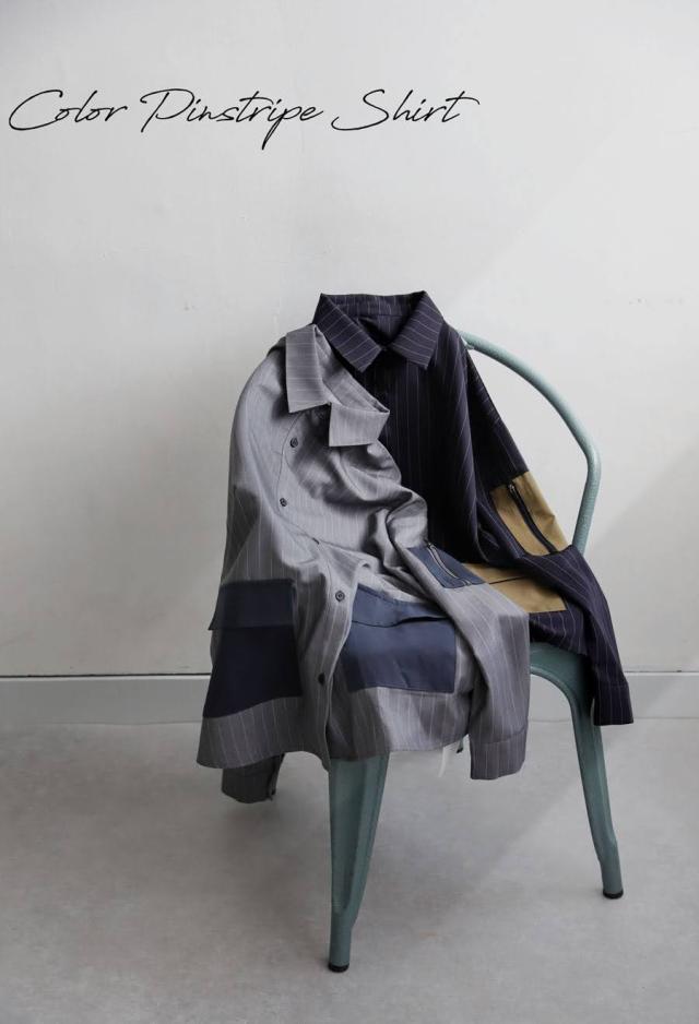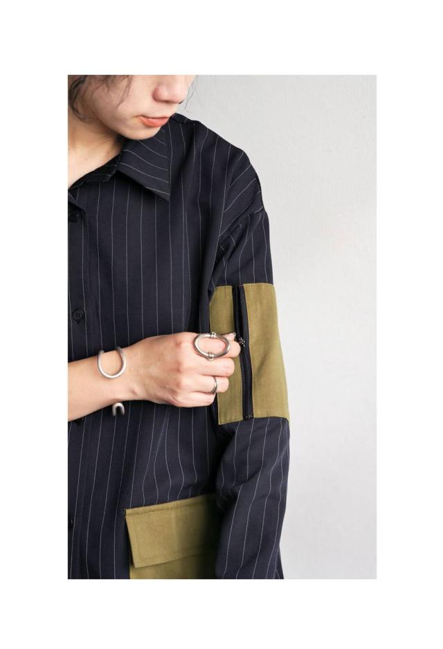 シンプルながらも個性を感じる、配色ポケットのついたストライプシャツ。