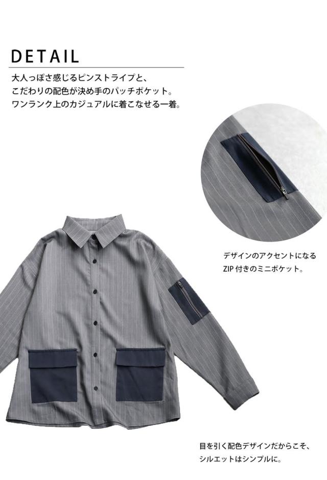 大人っぽさ感じる『ストライプパッチポケットシャツ』