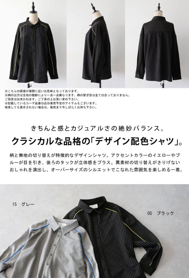 【予約:5月中旬納期】ストライプ切替シャツ シャツ レディース トップス 送料無料・再入荷 (100)メール便可