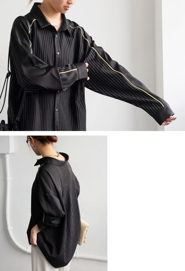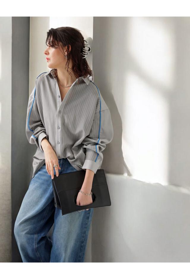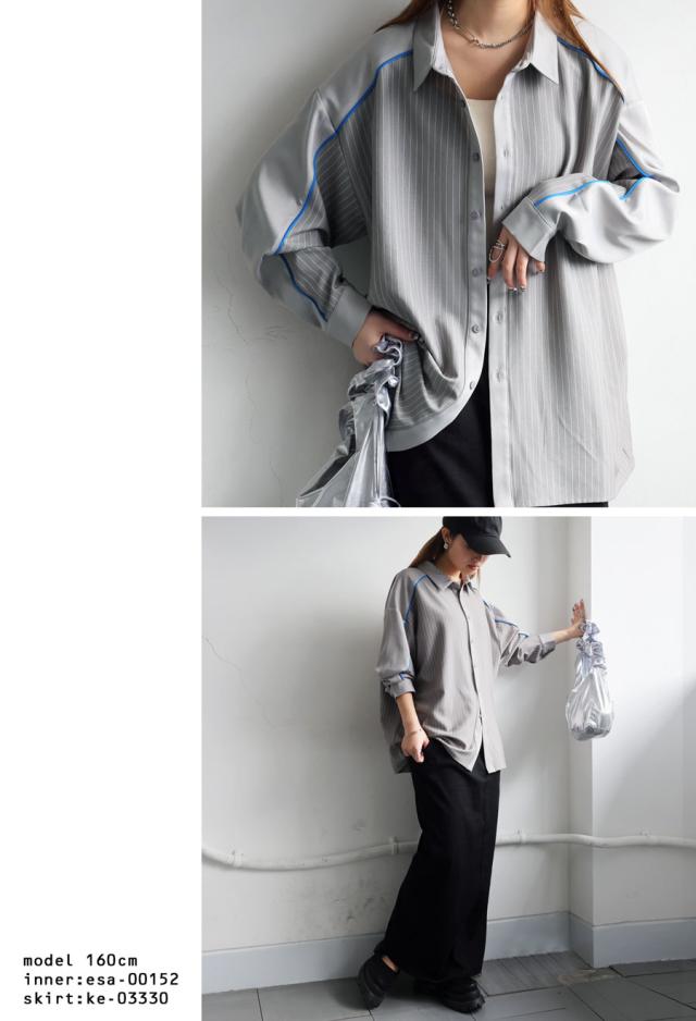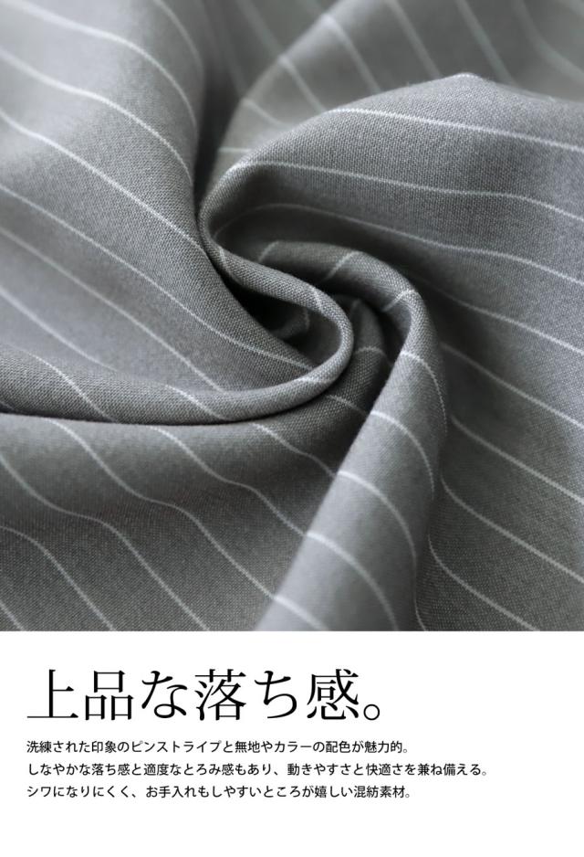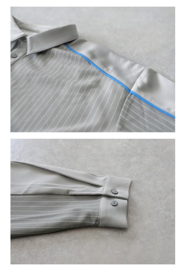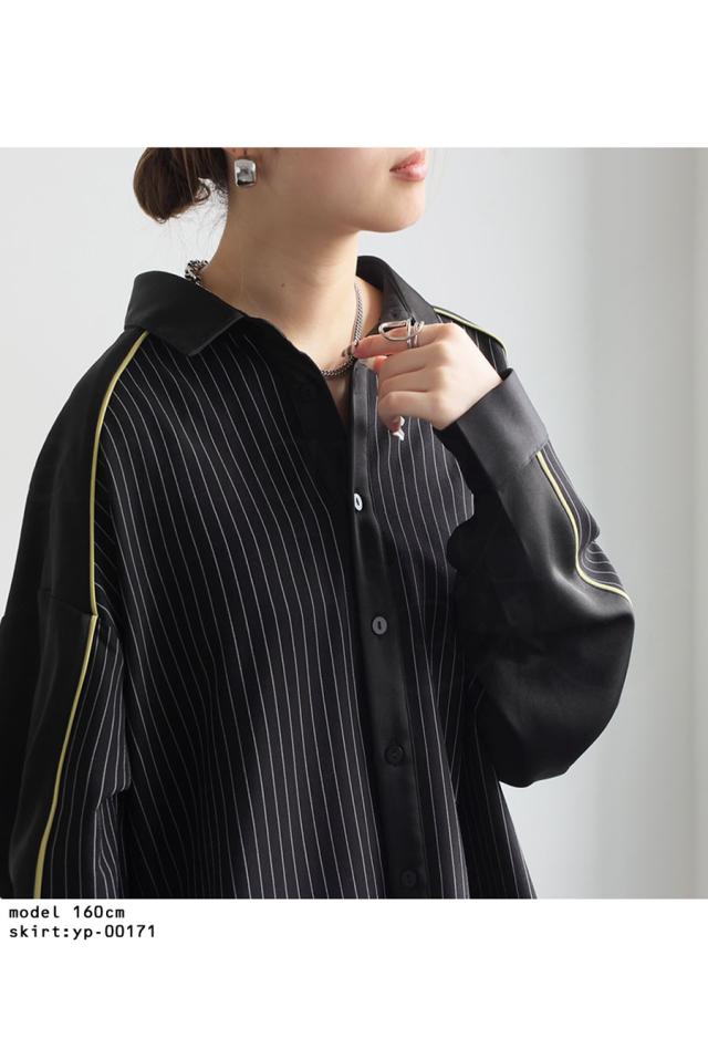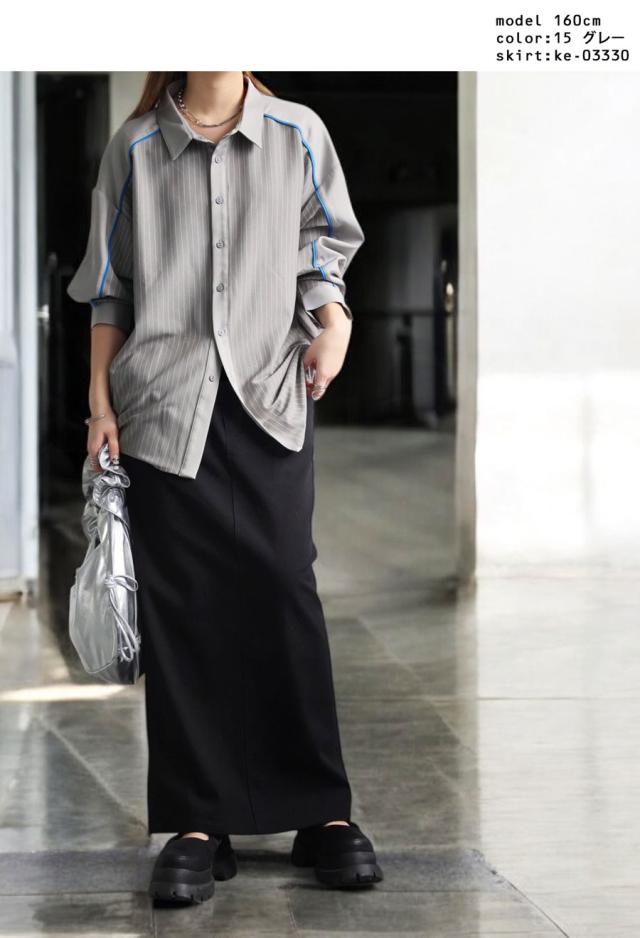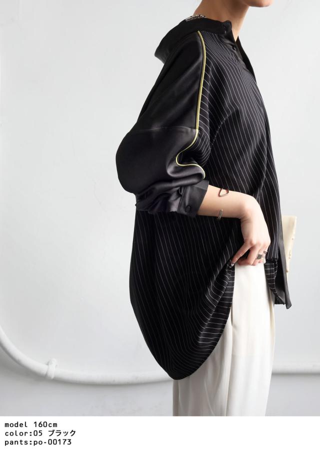 zk-00202 長袖 羽織り ストライプ柄 無地 切り替え 柄 ドッキング パイピング タック前開き オーバーサイズ ゆったり シンプル きれいめ 上品 体型カバー 細見え 華奢見え 大きめ
