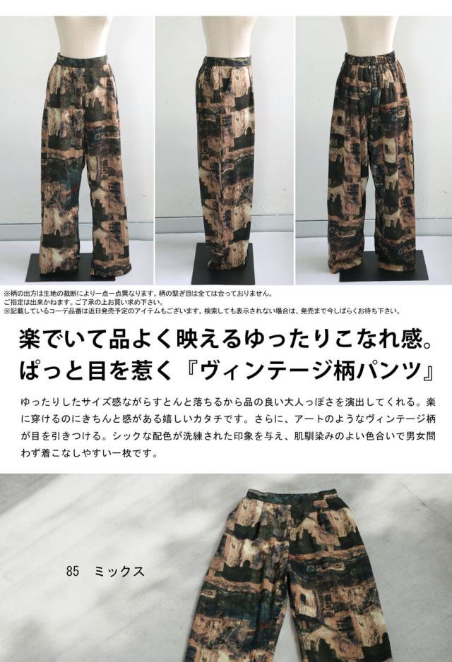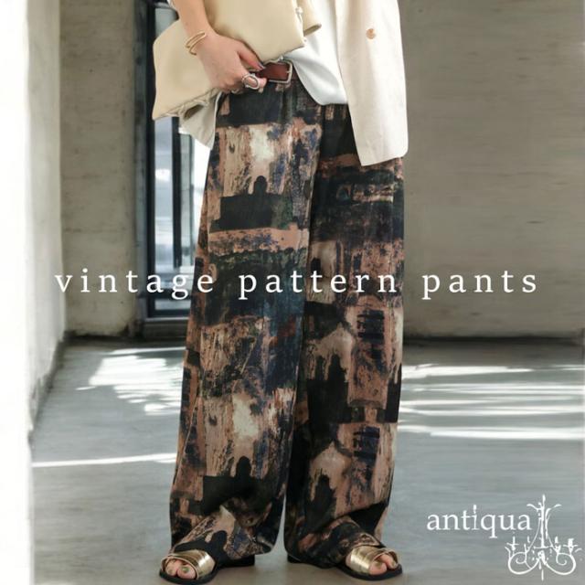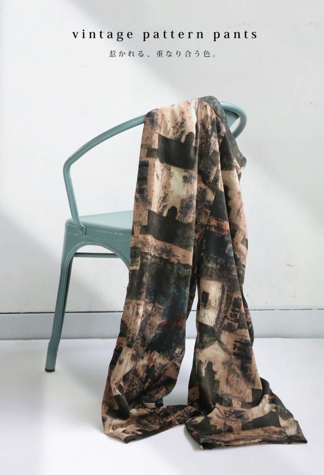 【検索ワード】ヴィンテージ柄パンツ パンツ レディース ボトムス ロング 長ズボン ニュアンス柄 アート柄 柄パンツ 柄 ワイドシルエット 前フラット 後ろゴム ポケット付き 裏地付き ゆったり きれいめ 上品 高級感 美脚 体型カバー 細見え 華奢見え 着痩せ 大きめ 大きいサイズ ロングパンツ 薄手 ユニセックス antiqua treecafe アンティカ ツリーカフェ 大人 おしゃれ 10代 20代 30代 40代 50代 60代 春 夏 秋 冬 オールシーズン お洒落 カジュアル かわいい かっこいい あんてぃか