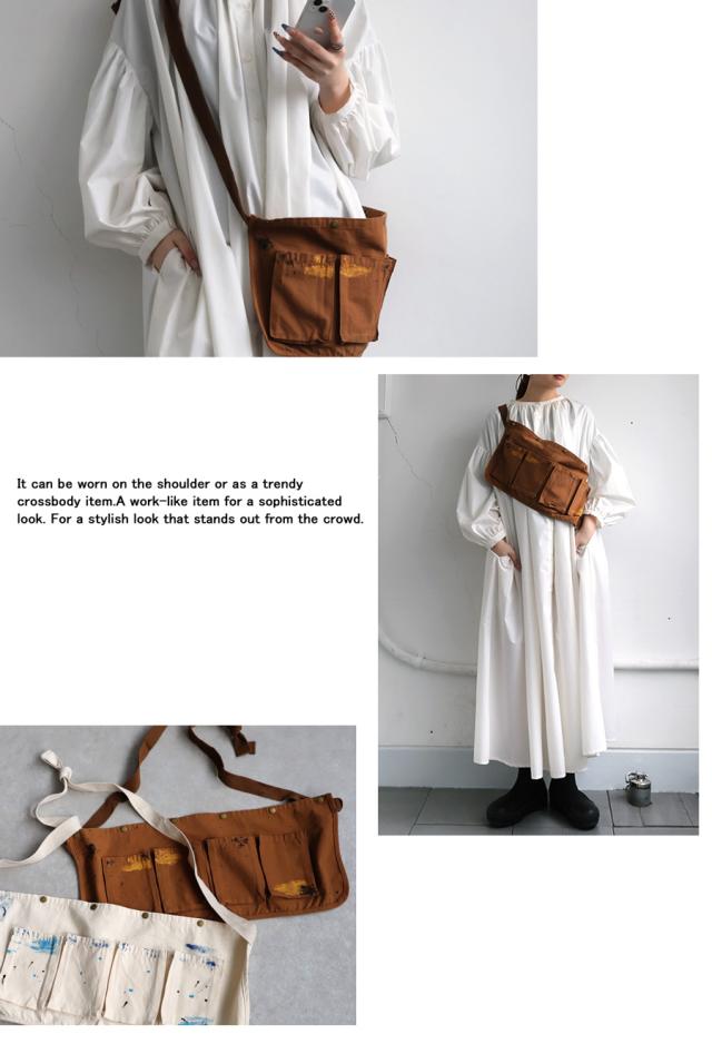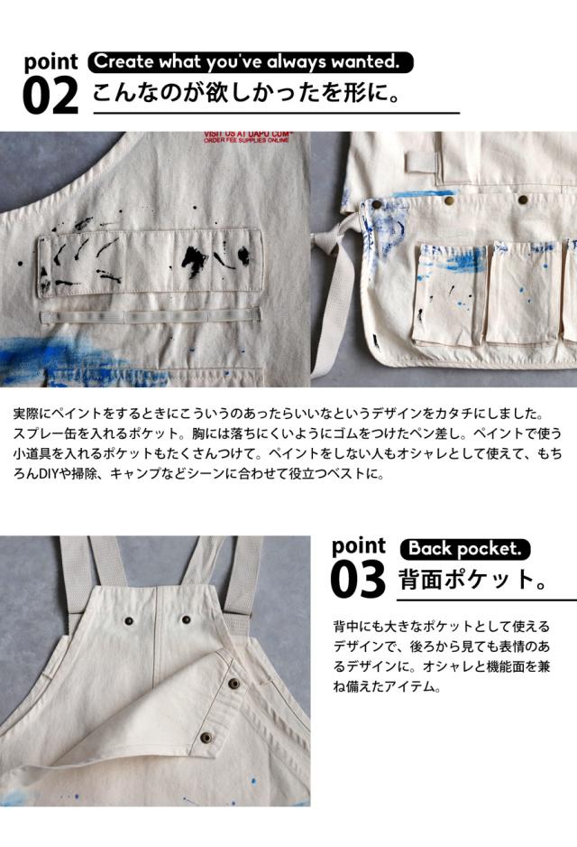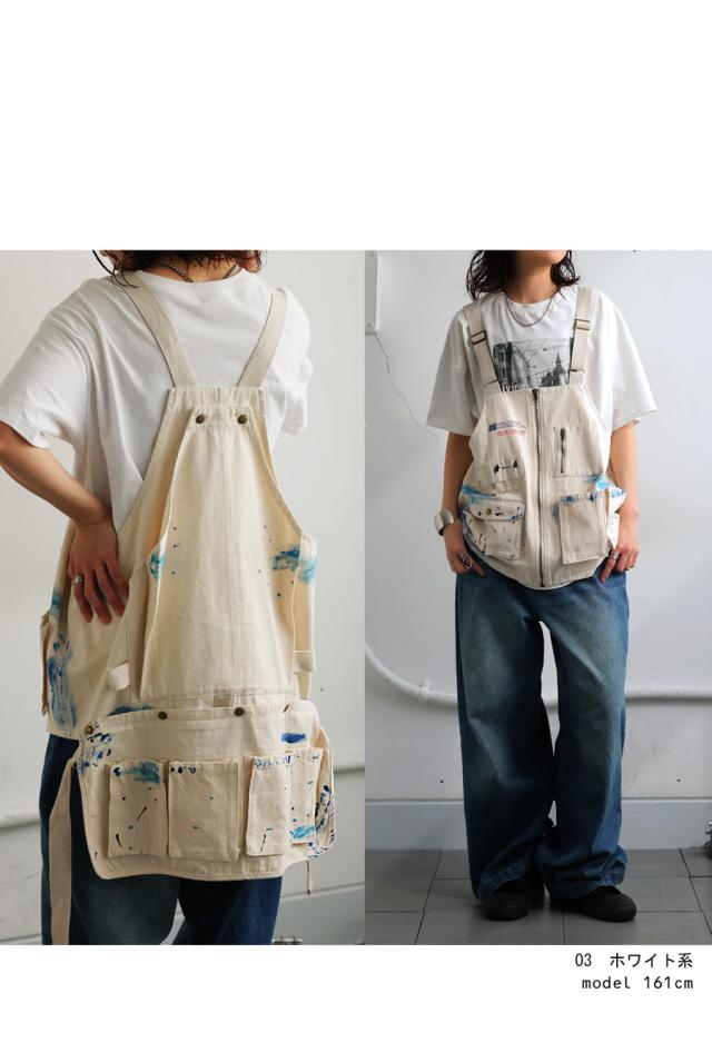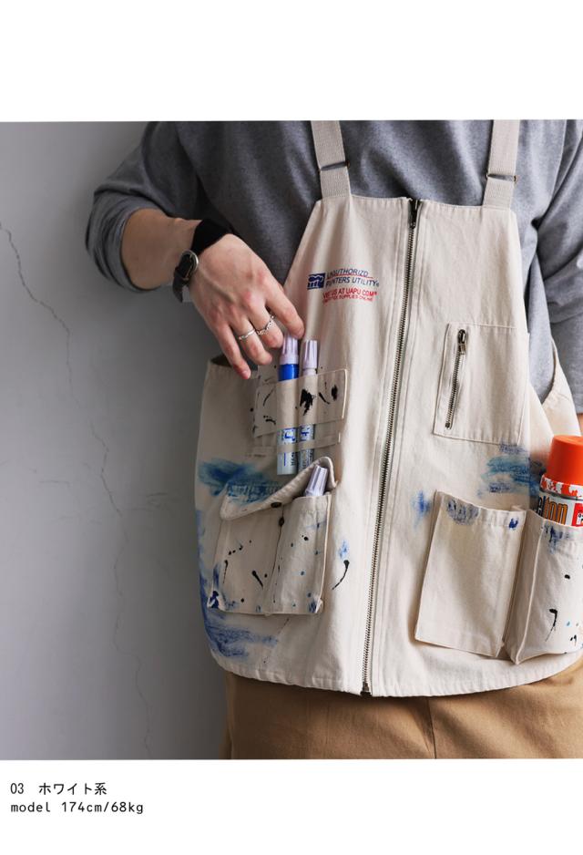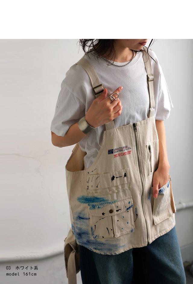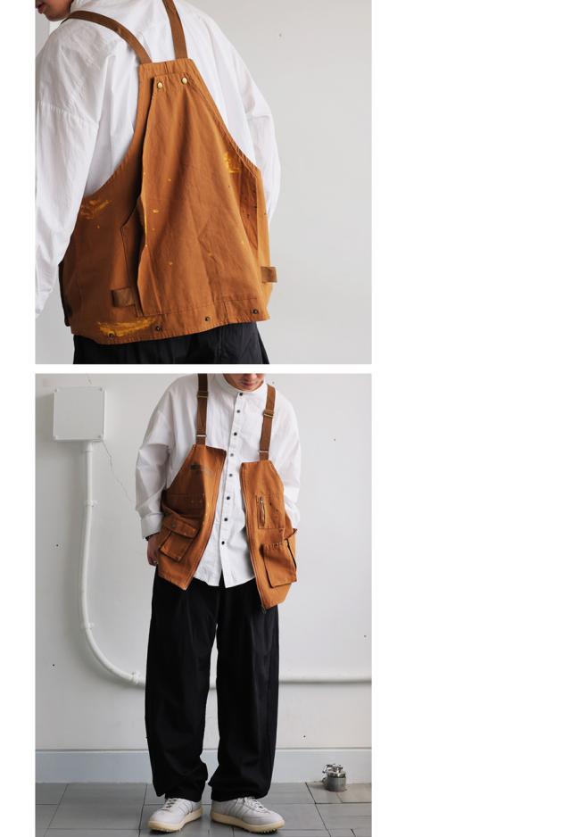 tab-0001 綿 コットン ゆったり アウトドア 前開き ファスナー ポケット ワークテイスト ハンドペイント エプロン ペン刺し キャンパス生地 取り外し可能 レイヤード ハンティングベスト