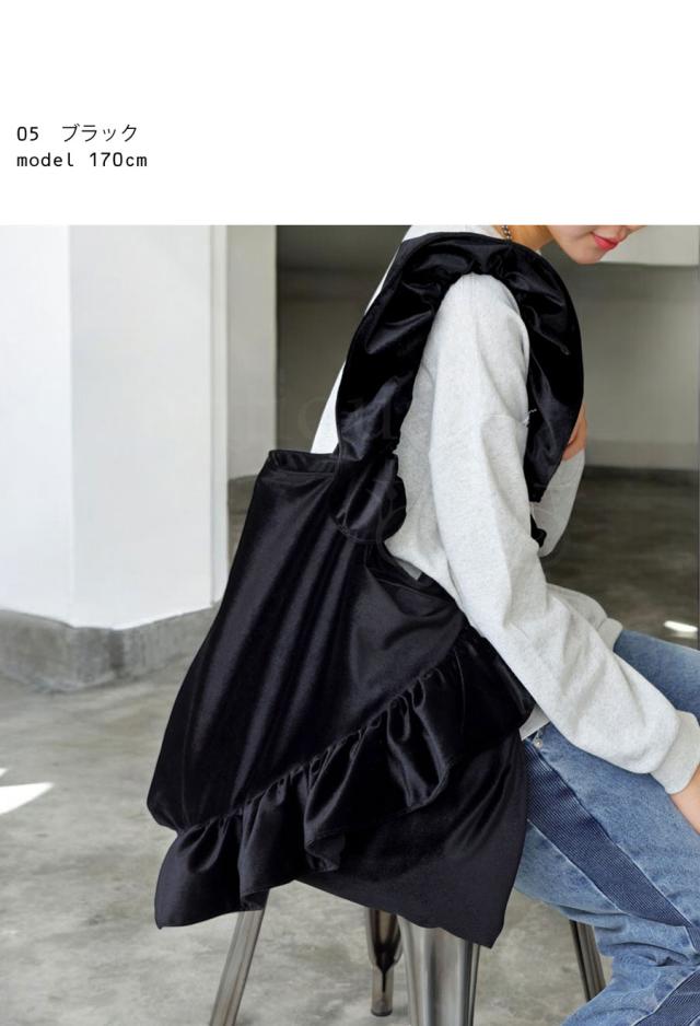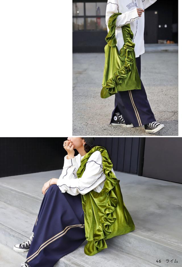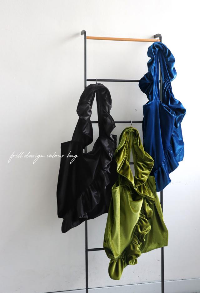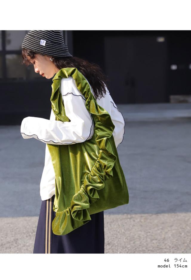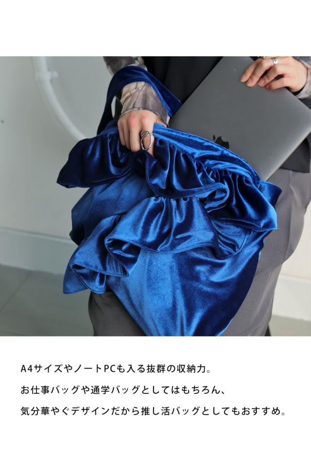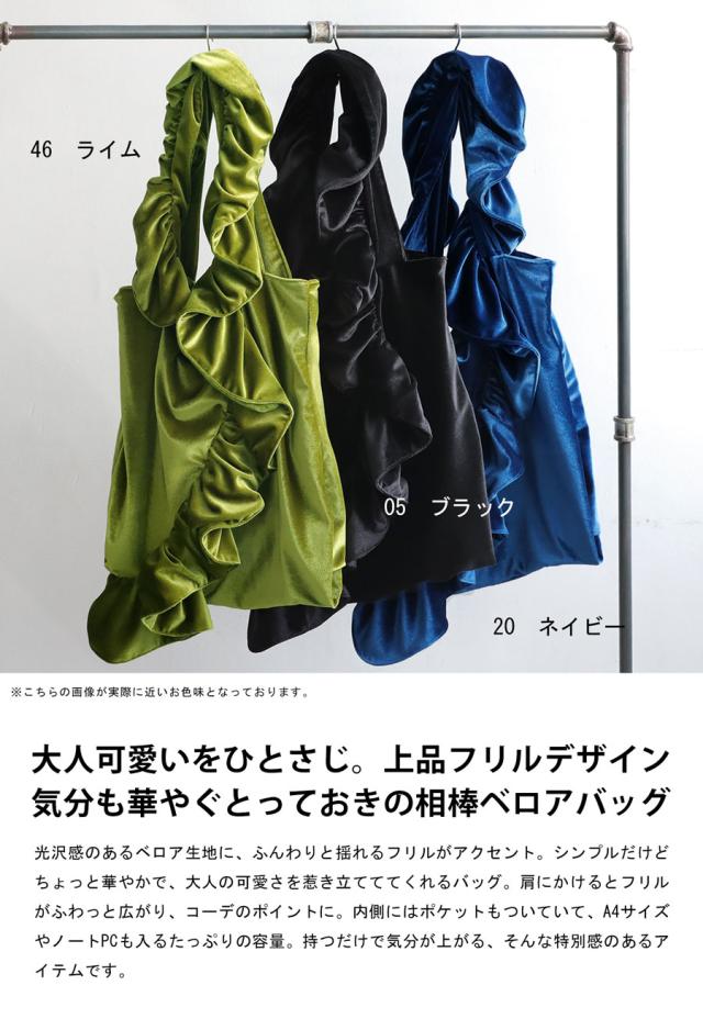 フリルデザイン ベロアバッグ バッグ レディース 鞄 送料無料・メール便不可