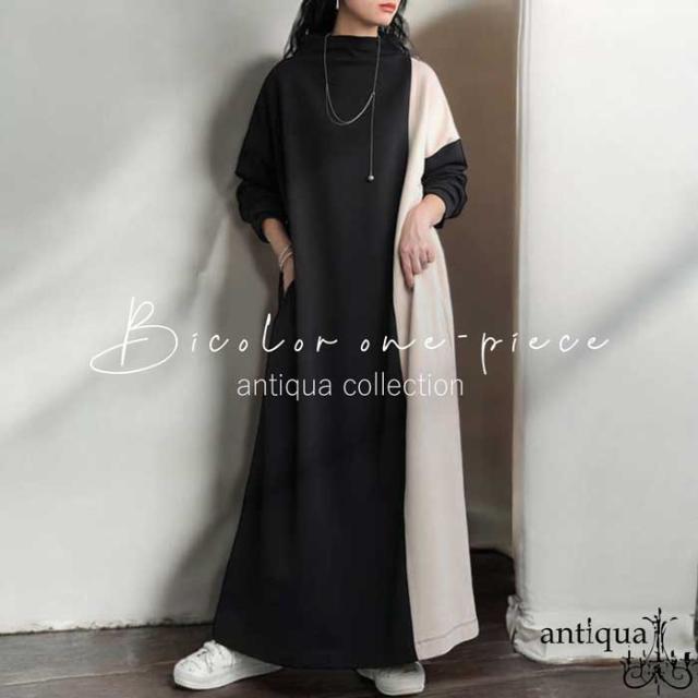 【検索ワード】バイカラーワンピース レディース ロング 長袖 オフタートル 無地 配色 ゆったり シンプル きれいめ 上品 高級感 ロングワンピ ワンピ バイカラー ボリューム 綿 コットン 着痩せ 体型カバー 大きいサイズ 楽ちん ラフ antiqua アンティカ 大人 おしゃれ 10代 20代 30代 40代 50代 60代 春 秋 冬 お洒落 カジュアル かわいい かっこいい あんてぃか
