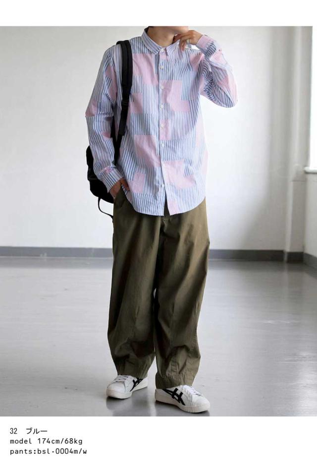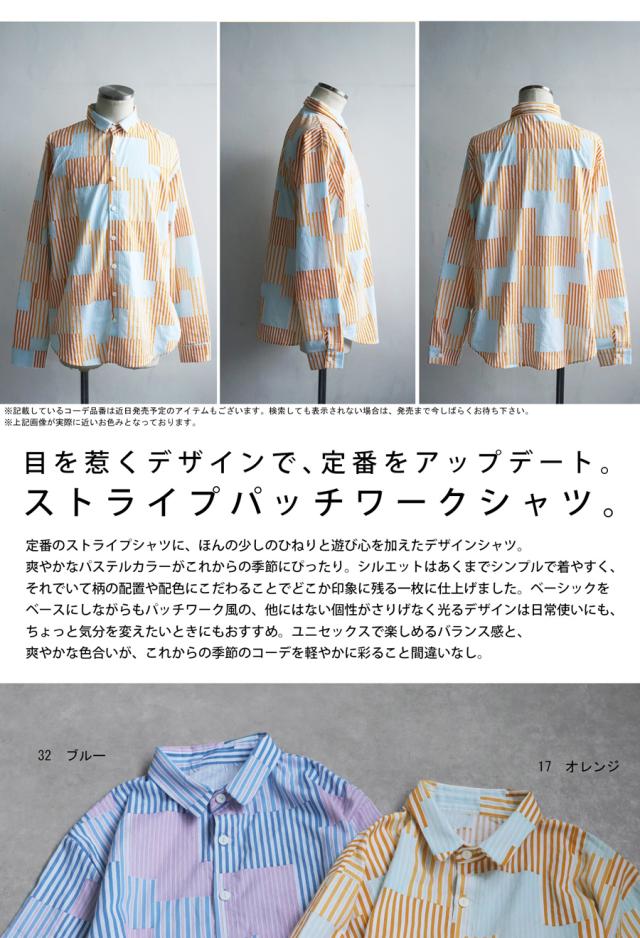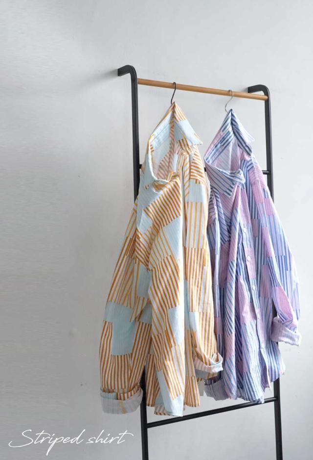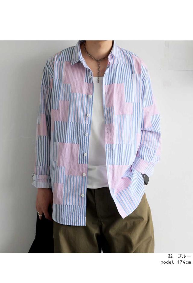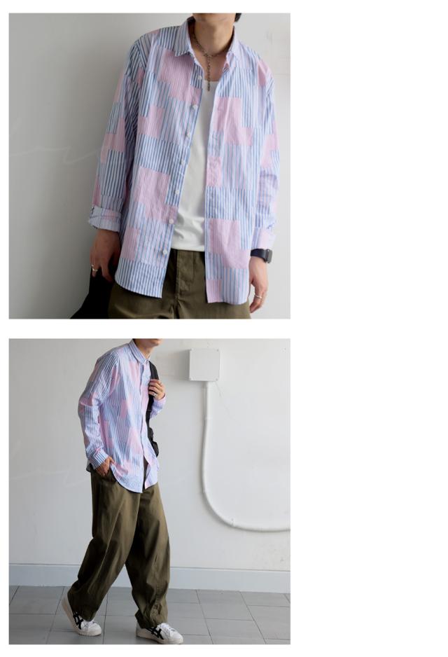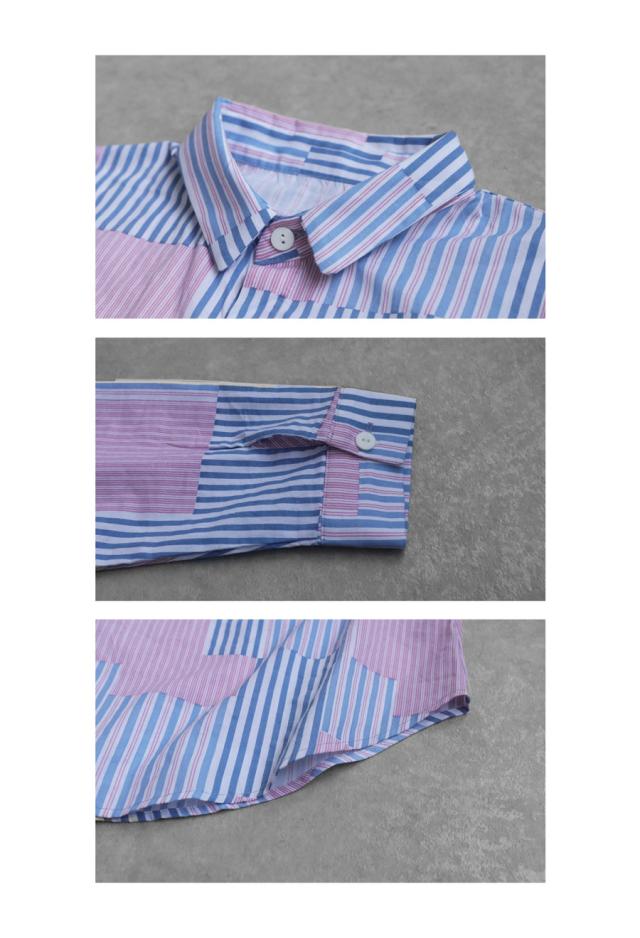 そんな絶妙なデザインバランスを叶える、パッチワーク風ストライプシャツが登場しました。