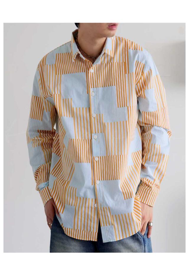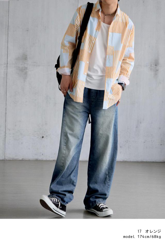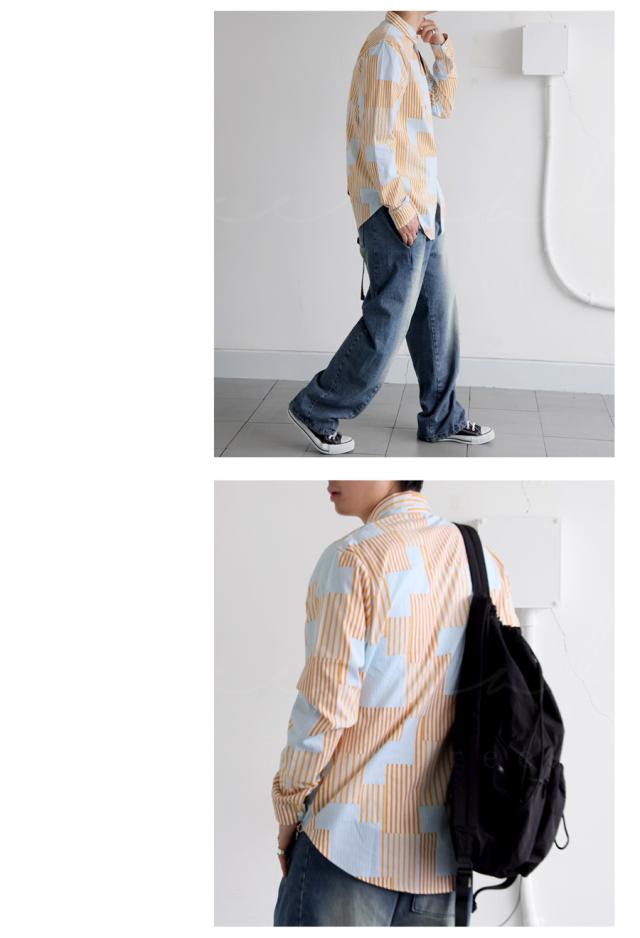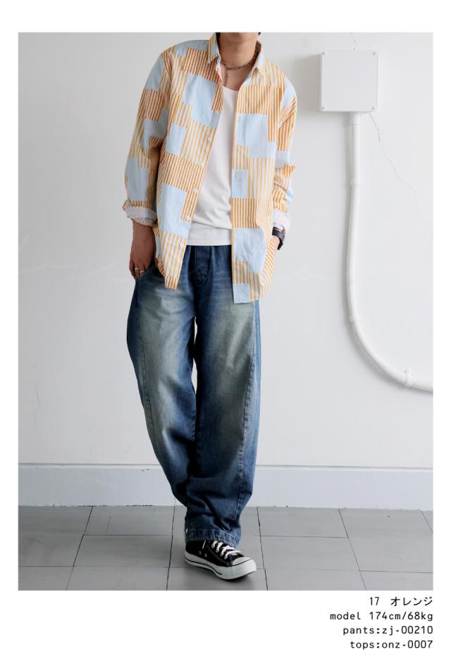 ze-01118z ゆるシルエット シャツコーデ 羽織トップス カラーブロック デザインシャツ 個性派ファッション 春服 秋コーデ 通気性 抜け感シャツ ナチュラルカラー おしゃれ着