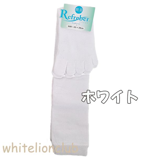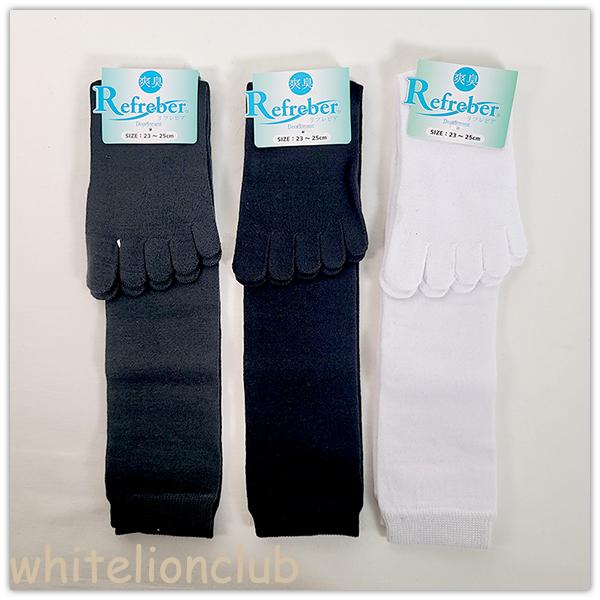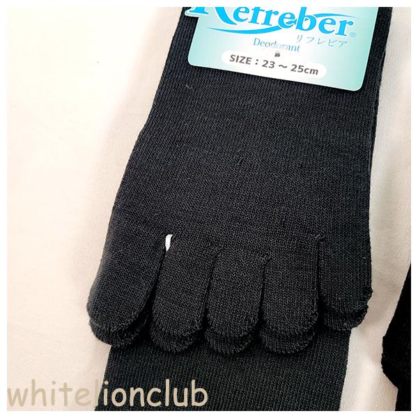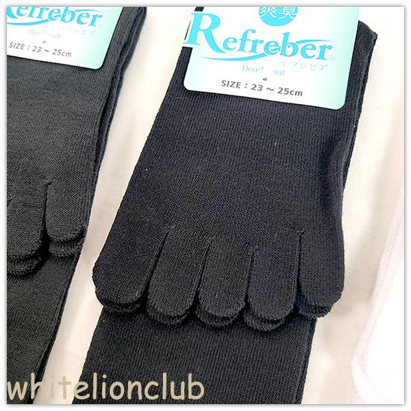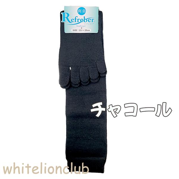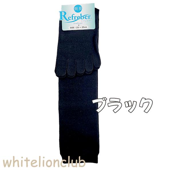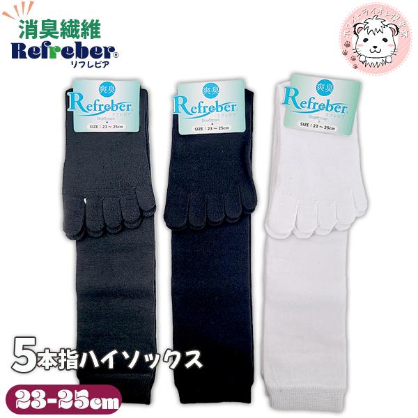 爽臭 リフレビア シンプル5本指 ハイソックス 37cm丈 レディース 消臭 五本指 綿混 無地 23-25cm 靴下 くつした くつ下 ソックス かかと付き 白 黒