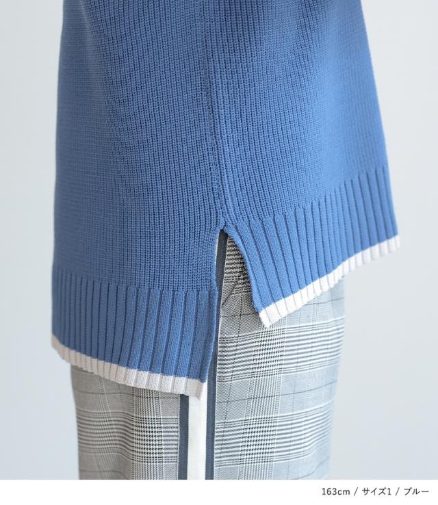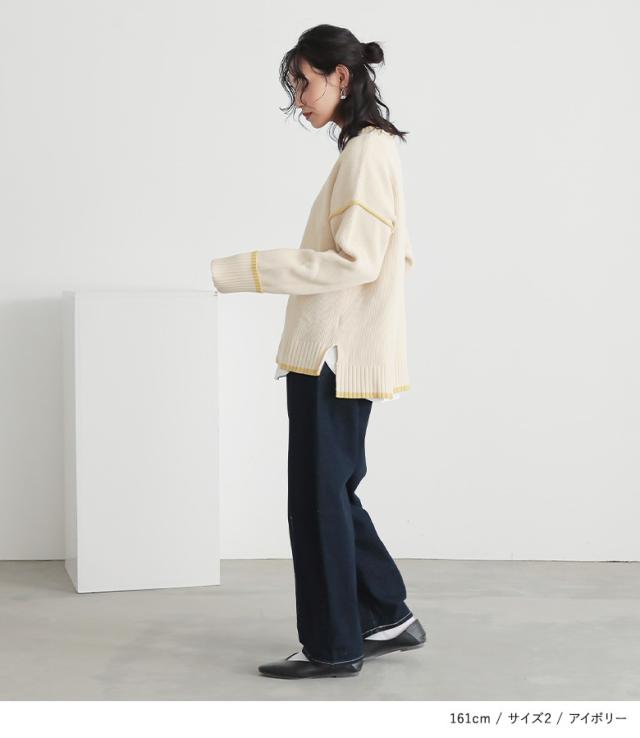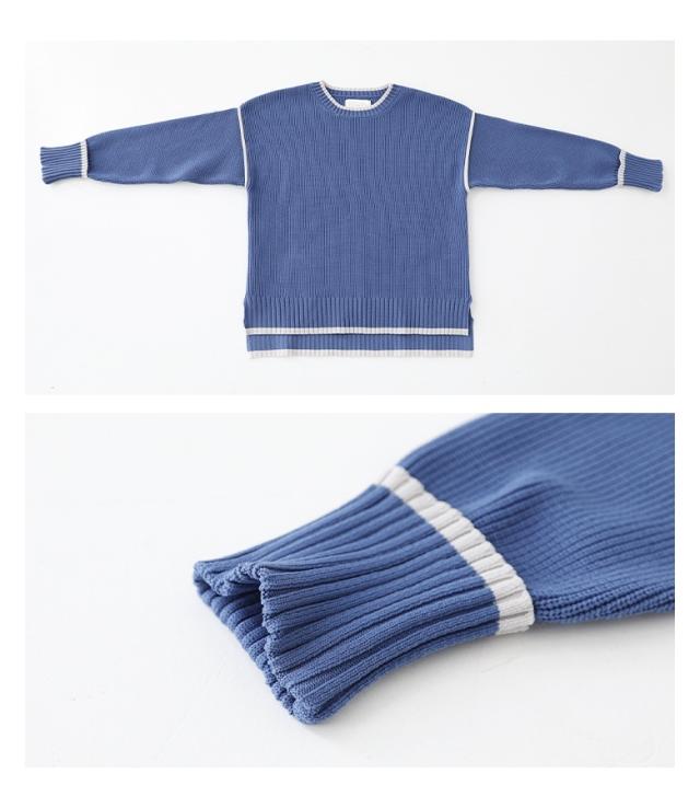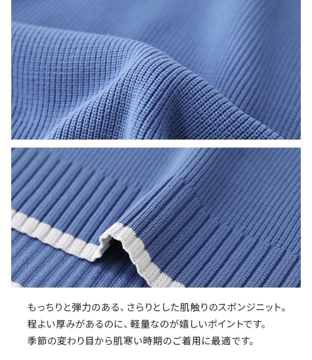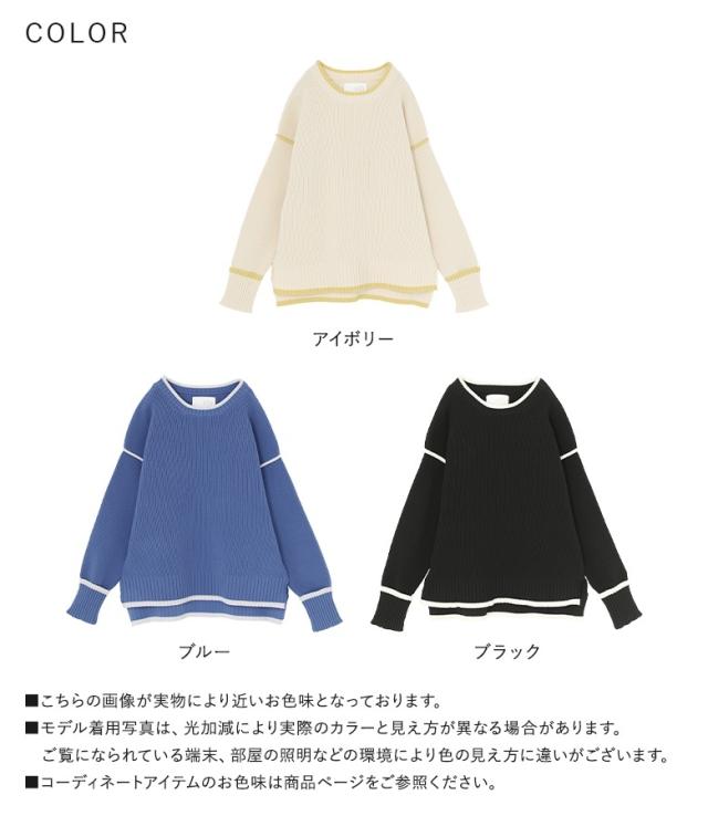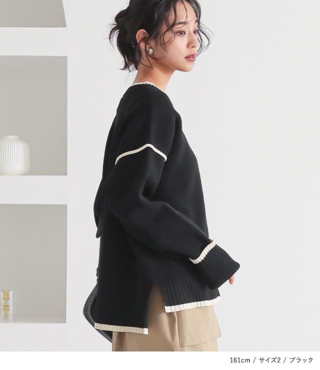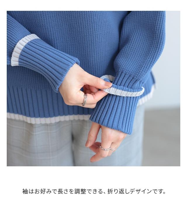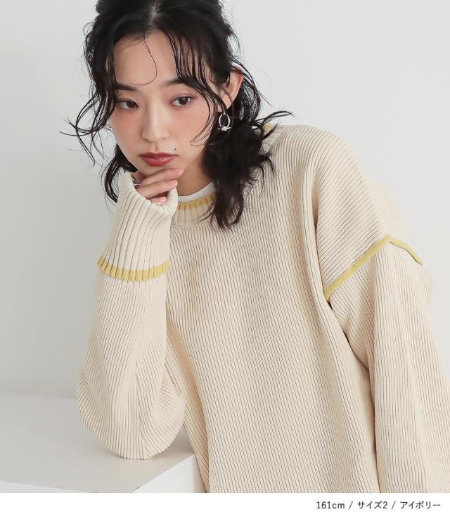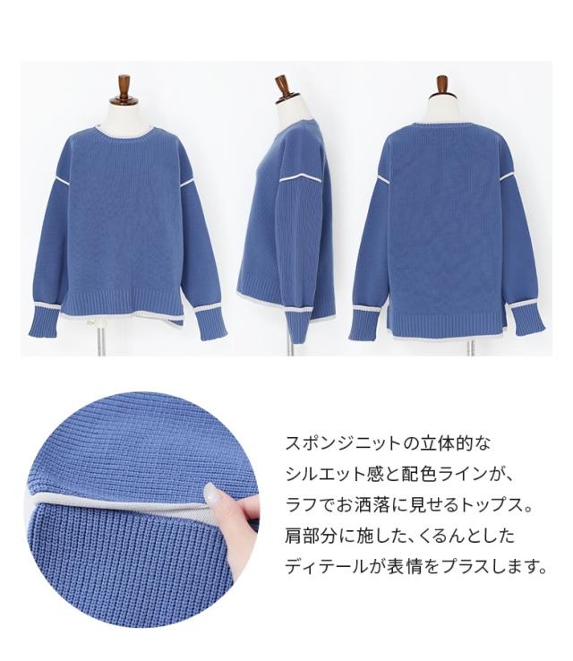 『配色ラインスポンジニット』【メール便不可】【40】[トップス ニット ニットトップス 長袖 レディース 配色 配色ニット 袖デザイン もちもち ラフ カジュアル シンプル]