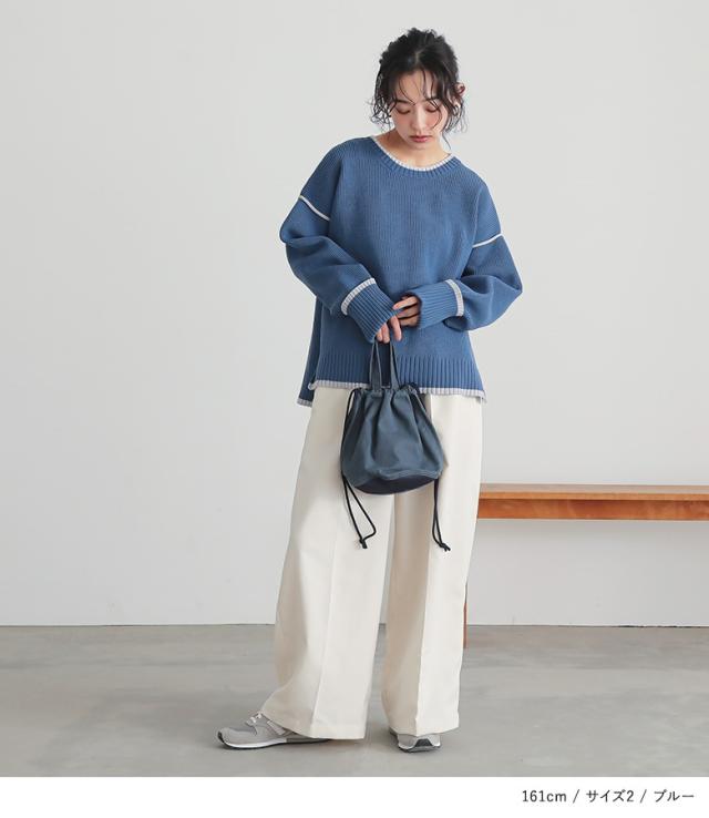 トップス ニット ニットトップス 長袖 レディース 配色 配色ニット 袖デザイン もちもち ラフ カジュアル シンプル 【TP】 ニット・セーター クルーネック Uネック n'OrLABEL ノア—ルレーベル 大人女子 大人可愛い お洒落可愛い 大人カジュアル ベーシック ニュアンス エフォートレス オフィスカジュアル ミディ丈 ドロップショルダー Aライン 無地 ポリエステル おうちで洗える 春 秋 冬 ナチュラル フェミニン 可愛い系 上品 きれいめ Sサイズ Mサイズ Lサイズ LLサイズ 3Lサイズ 10代 20代 30代 40代 50代 60代 低身長 高身長 女子会 オフィス 通勤 通学 お買い物 お出掛け 旅行 おしゃれ お洒落 トレンド 流行 osharewalker オシャレウォーカー おしゃれうぉーかー ホワイト 白 アイボリー ブルー 青 ブラック 黒 春色ニット[ID]11tm0ni